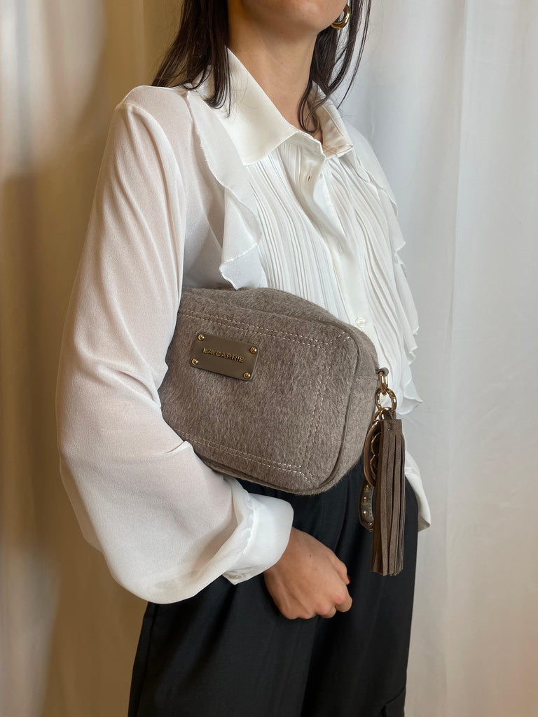 Borsa a spalla in lana cotta ed ecopelle con tracolla catena rimovibile