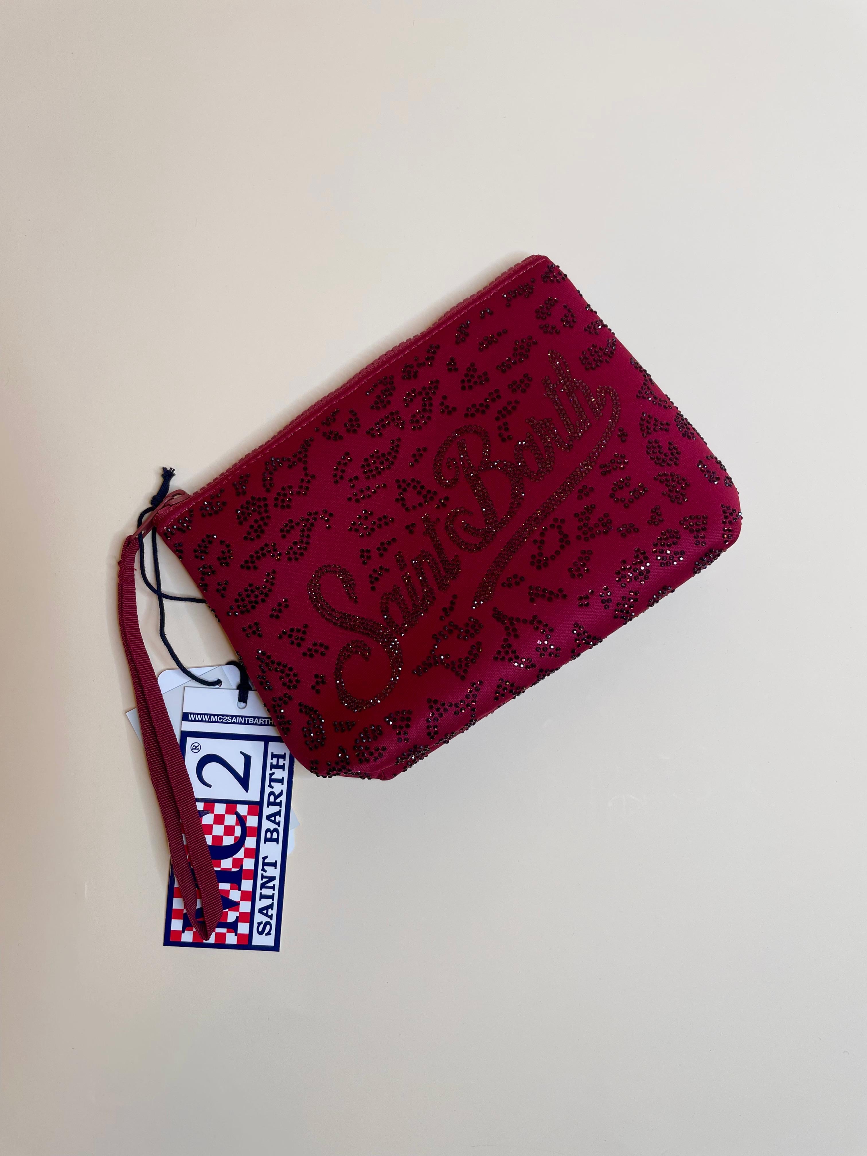 Pochette Mc2 Strass Leopard Bordeaux