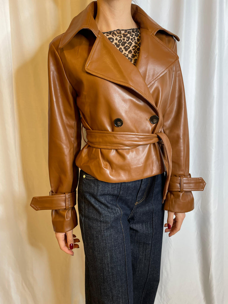 Trench color rame vestibilità regolare, doppio petto con fusciacca in vita.