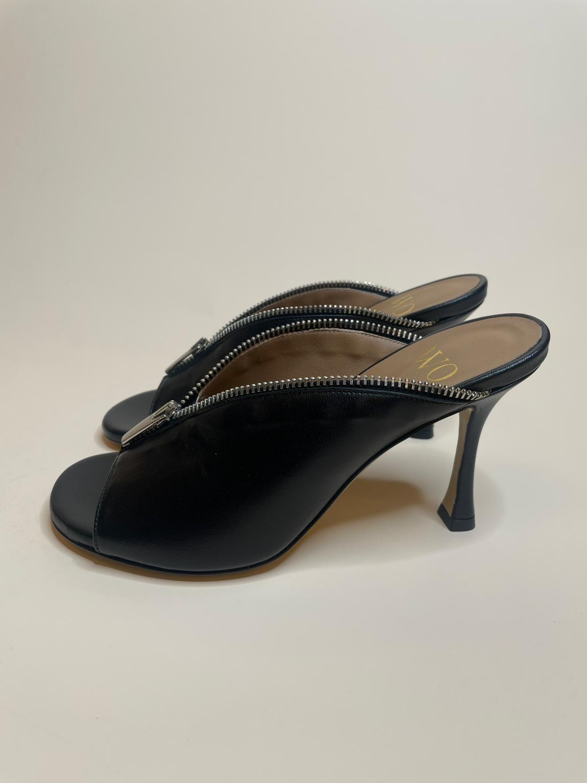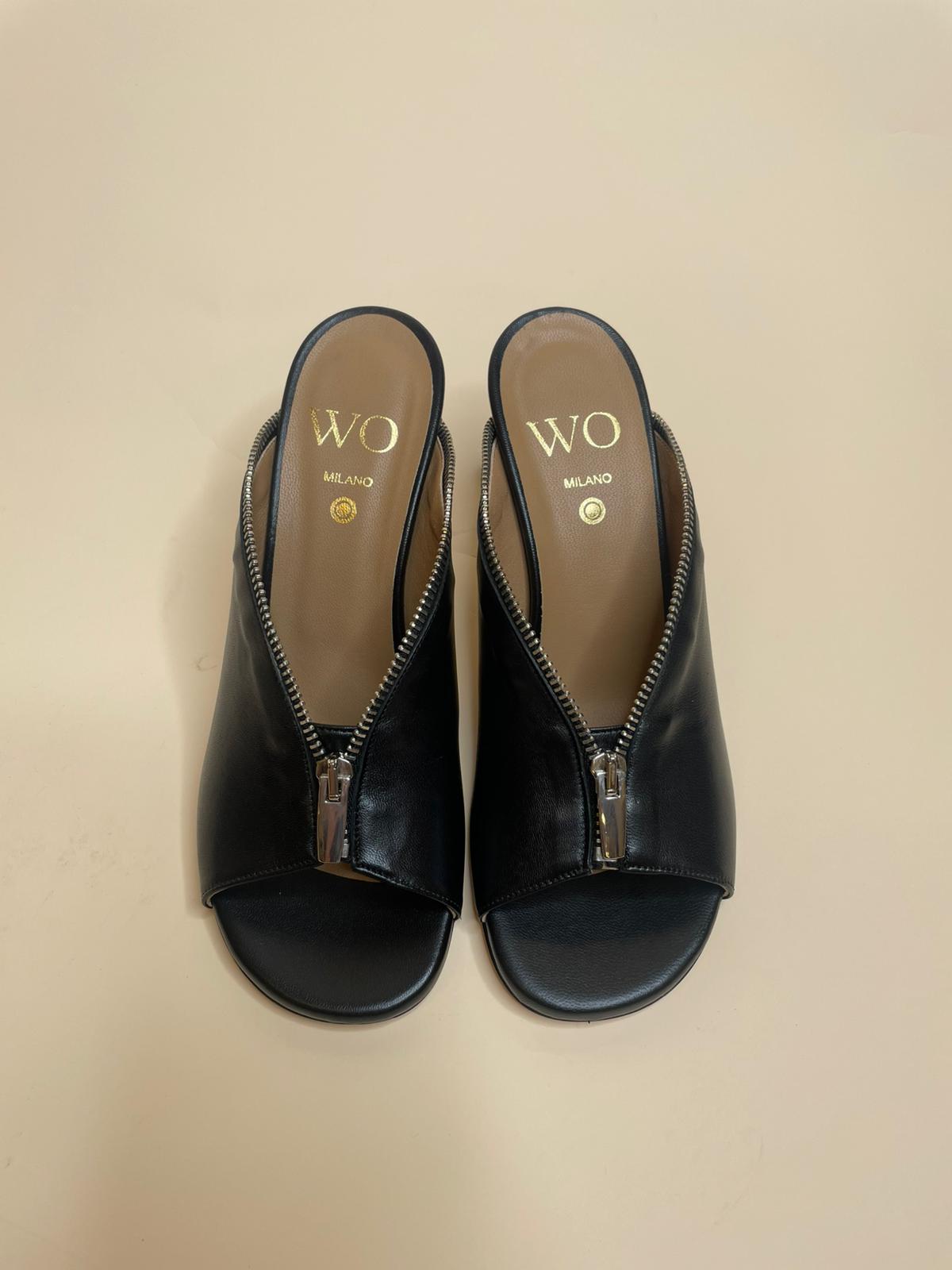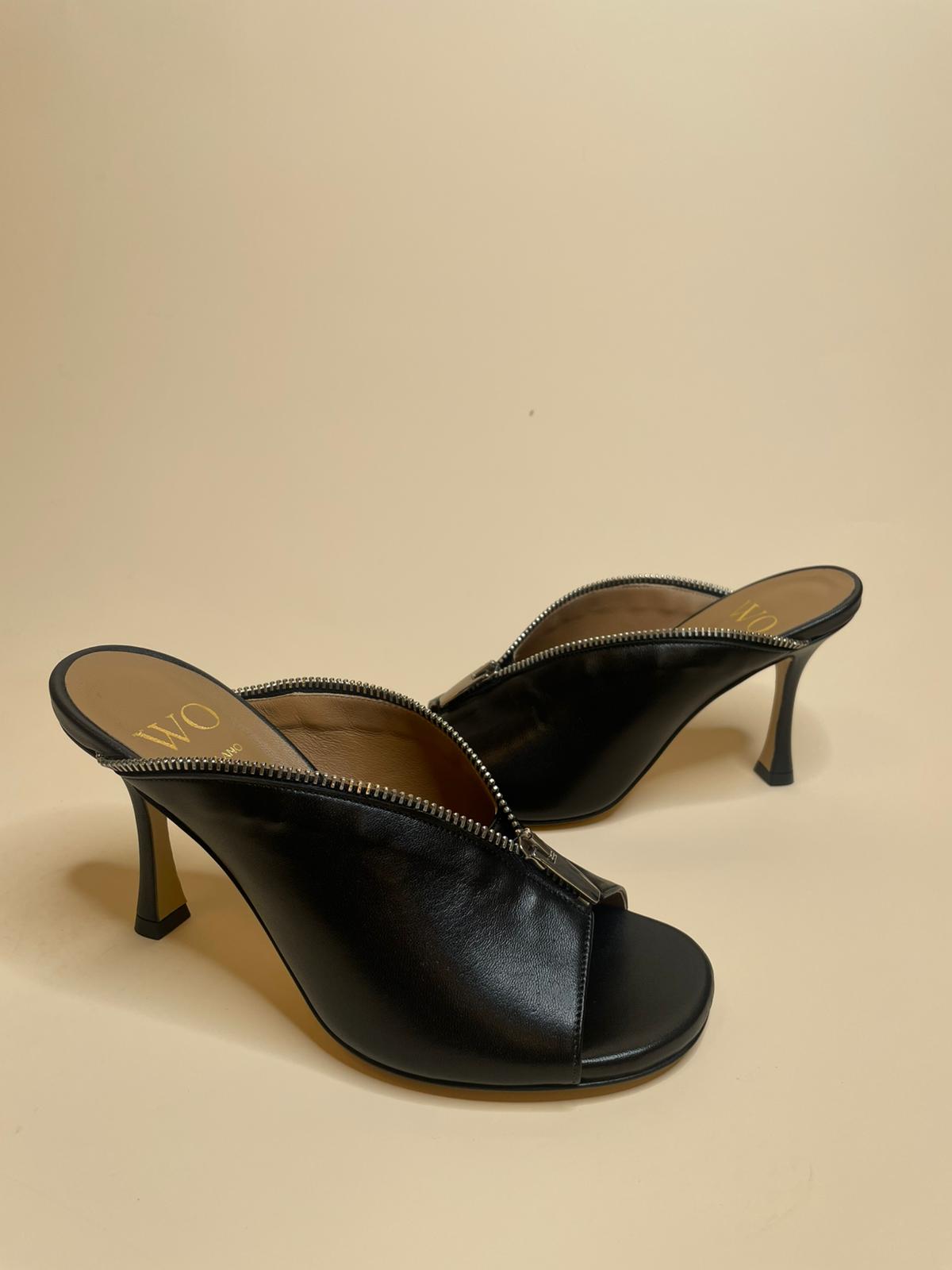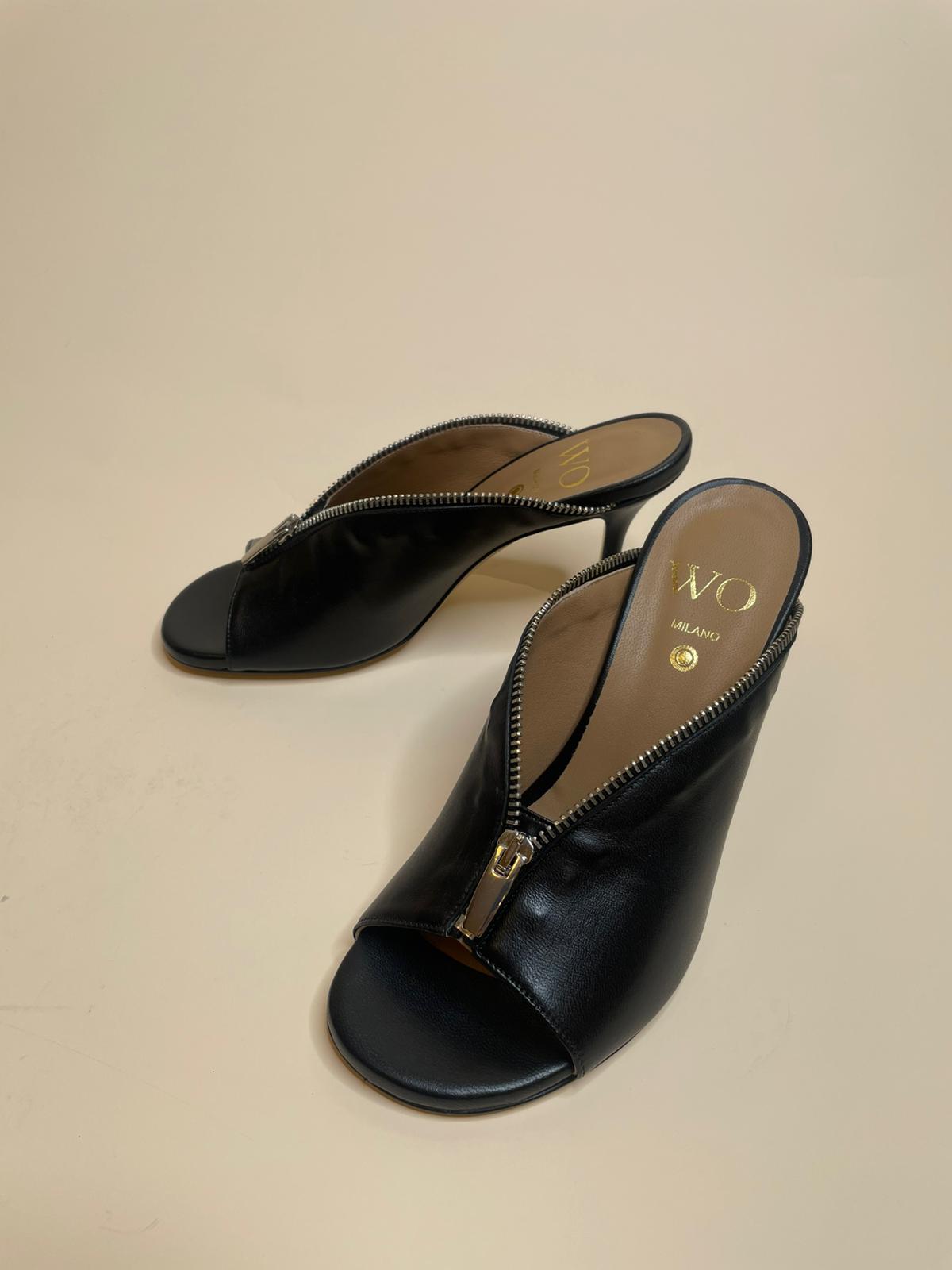 Sabot nero in vera pelle di vitello con punta arrotondata