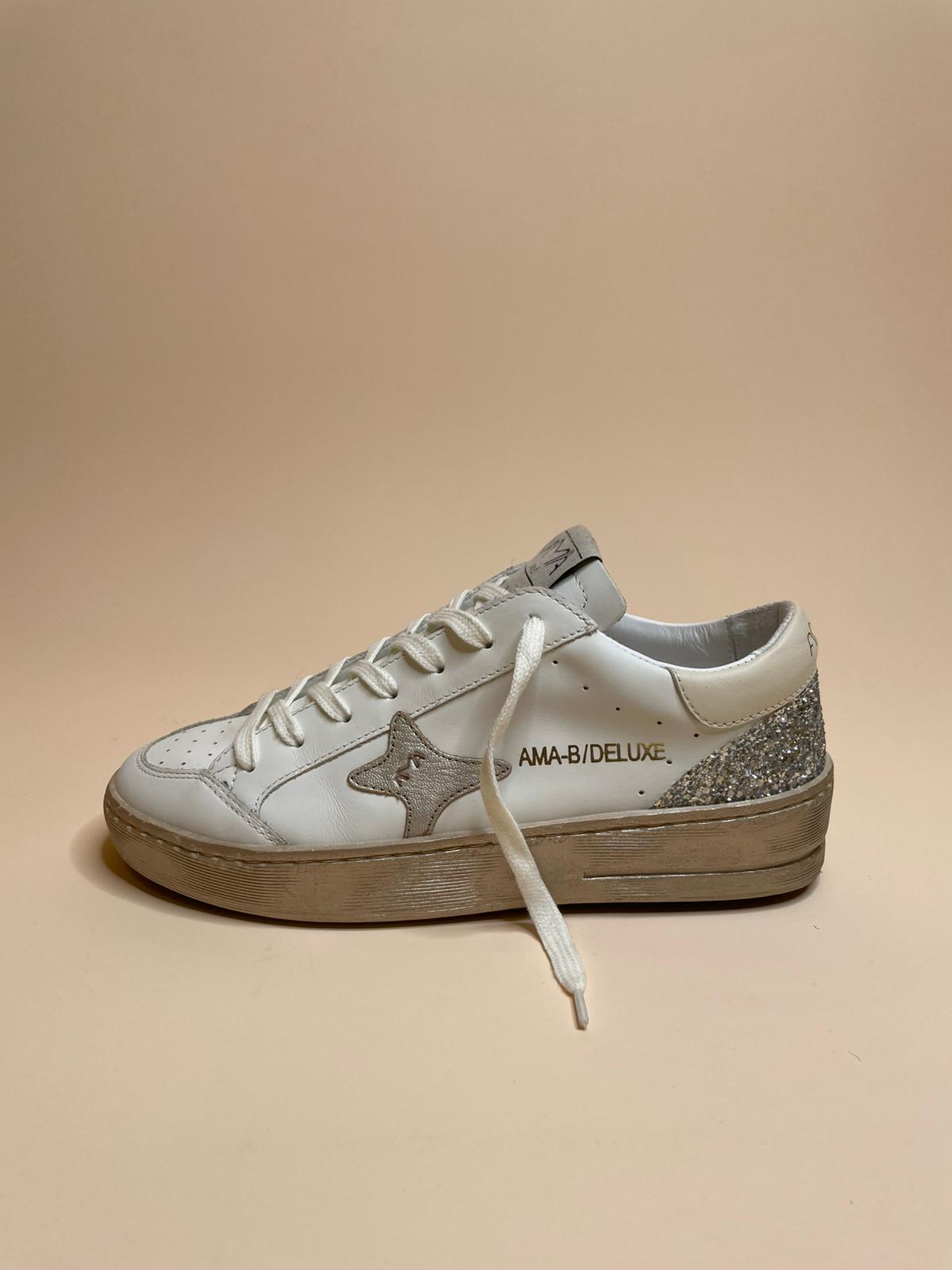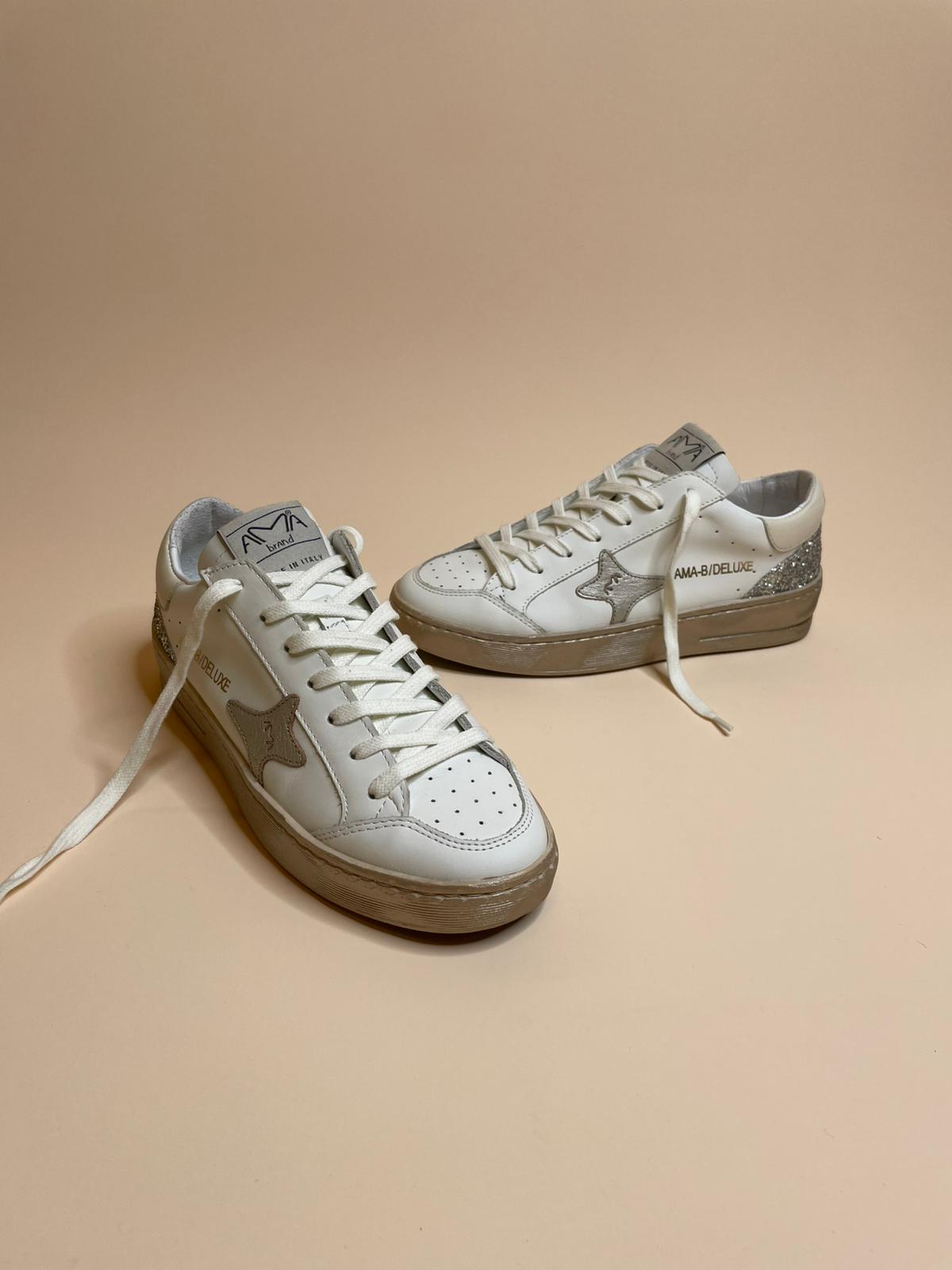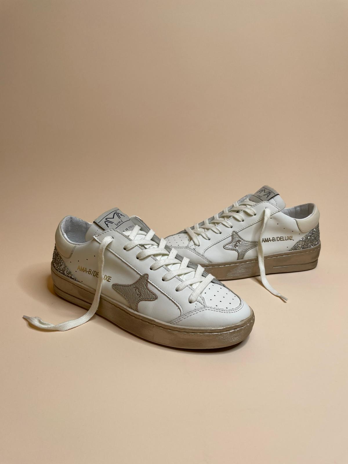 Sneaker in vera pelle, Made in Italy con para laminata e glitter sul retro.