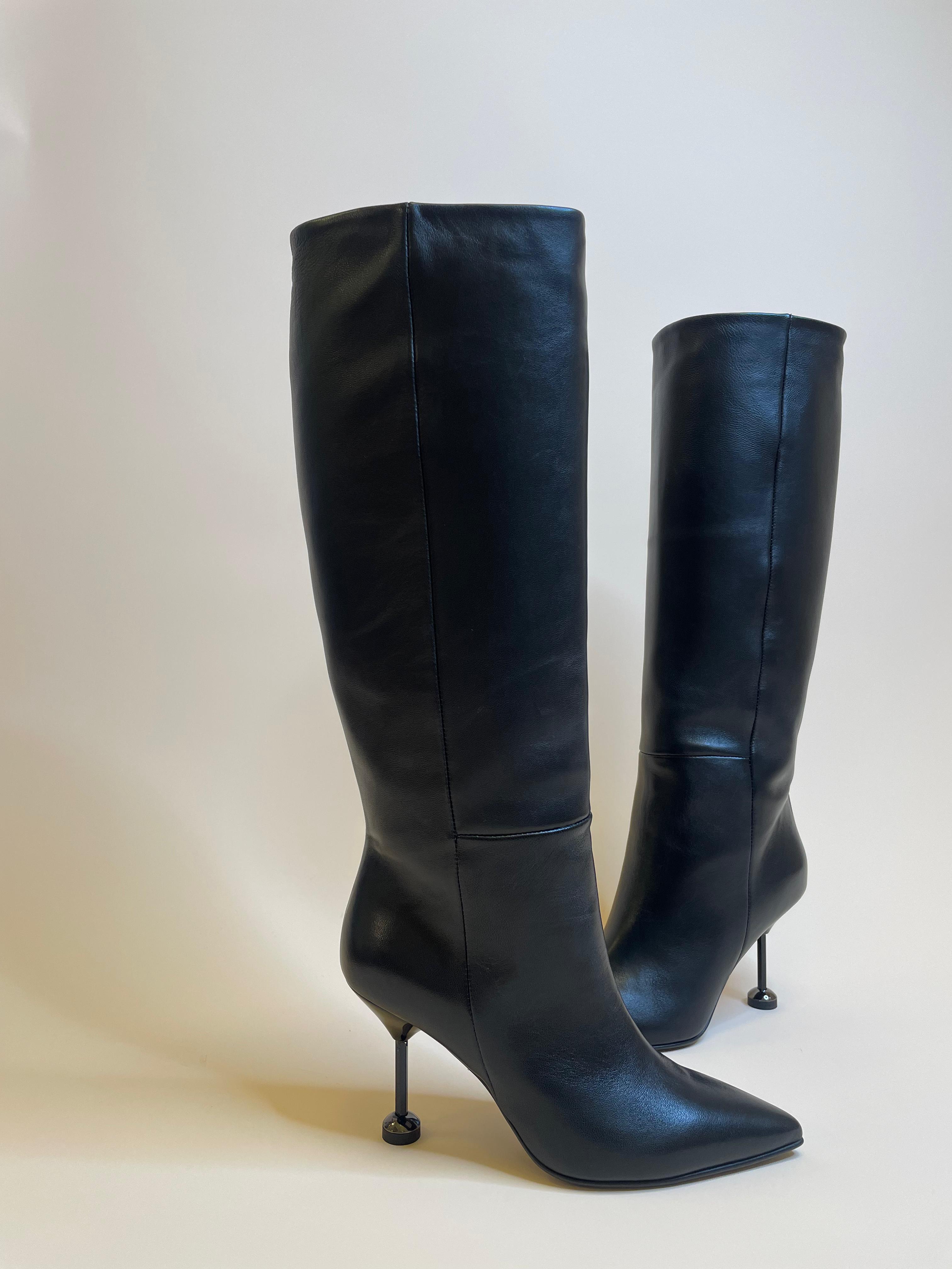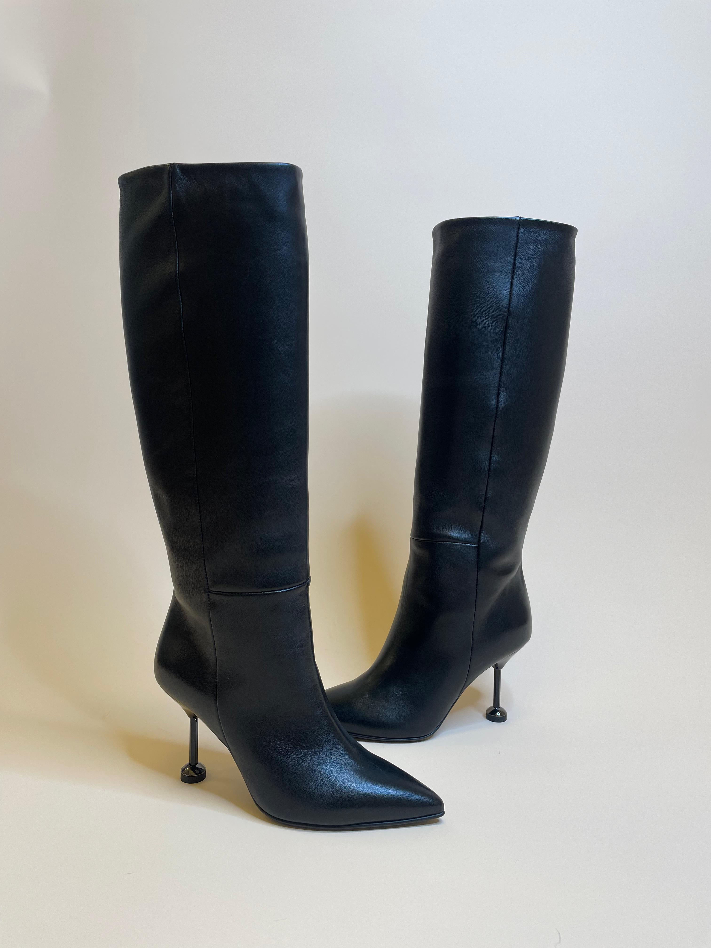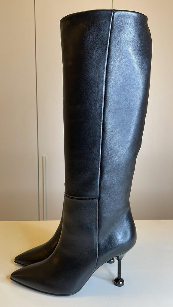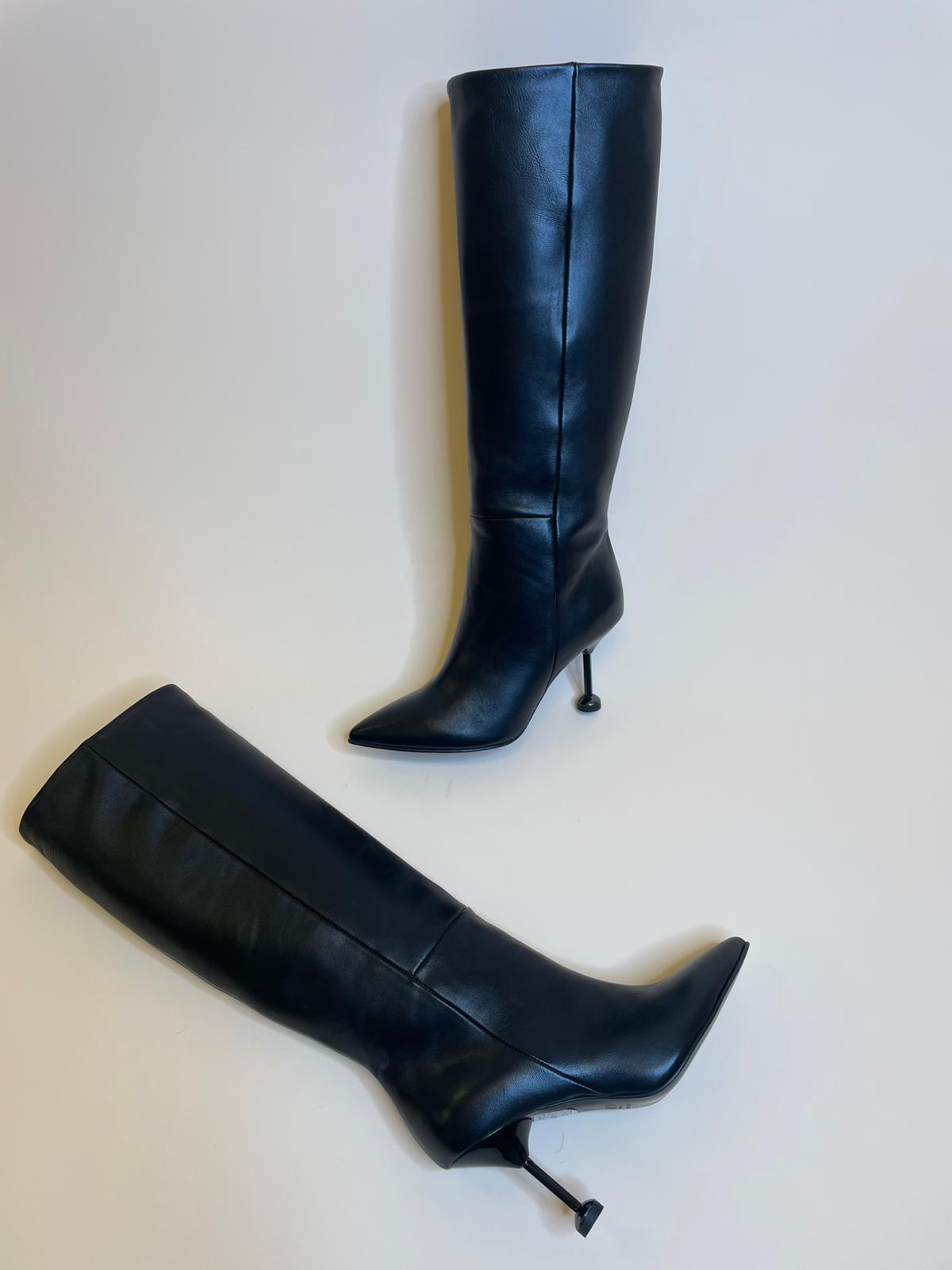 Stivale nero a punta in vera pelle di vitello made in Italy