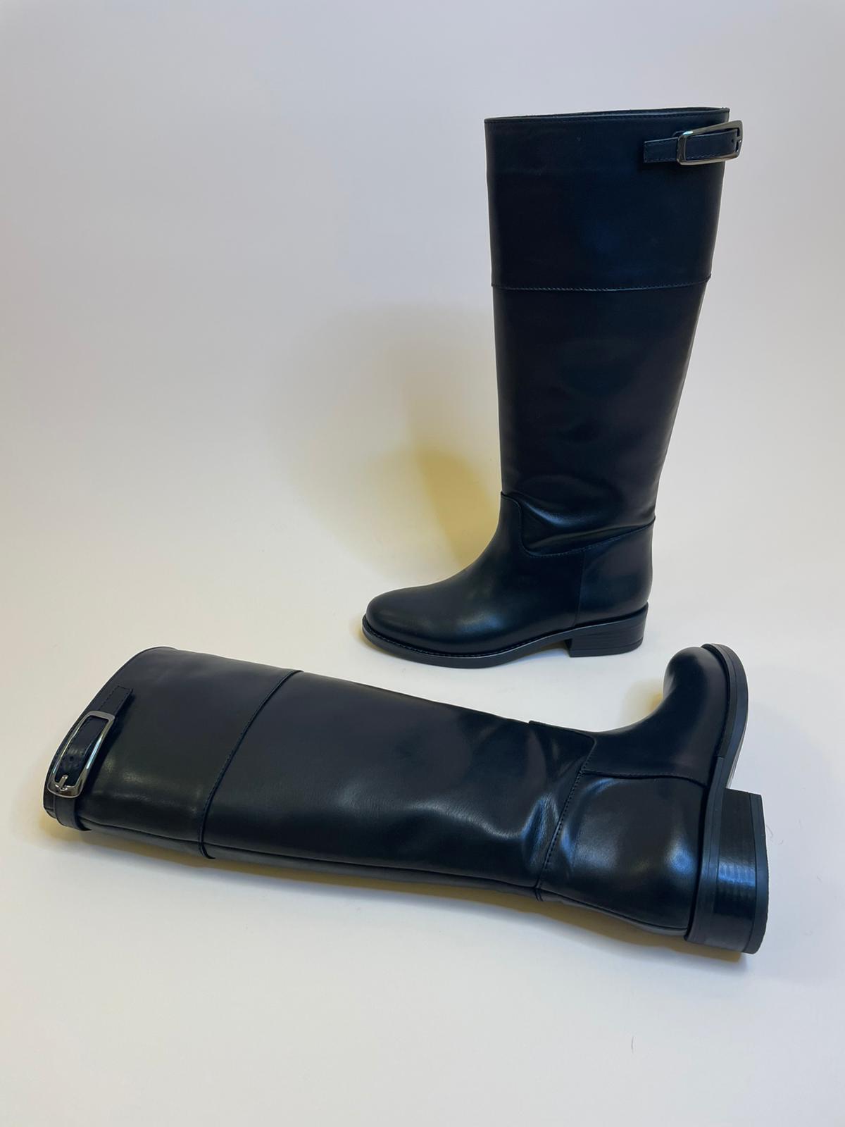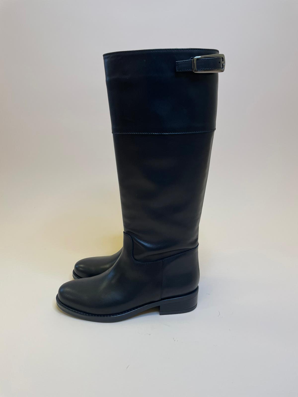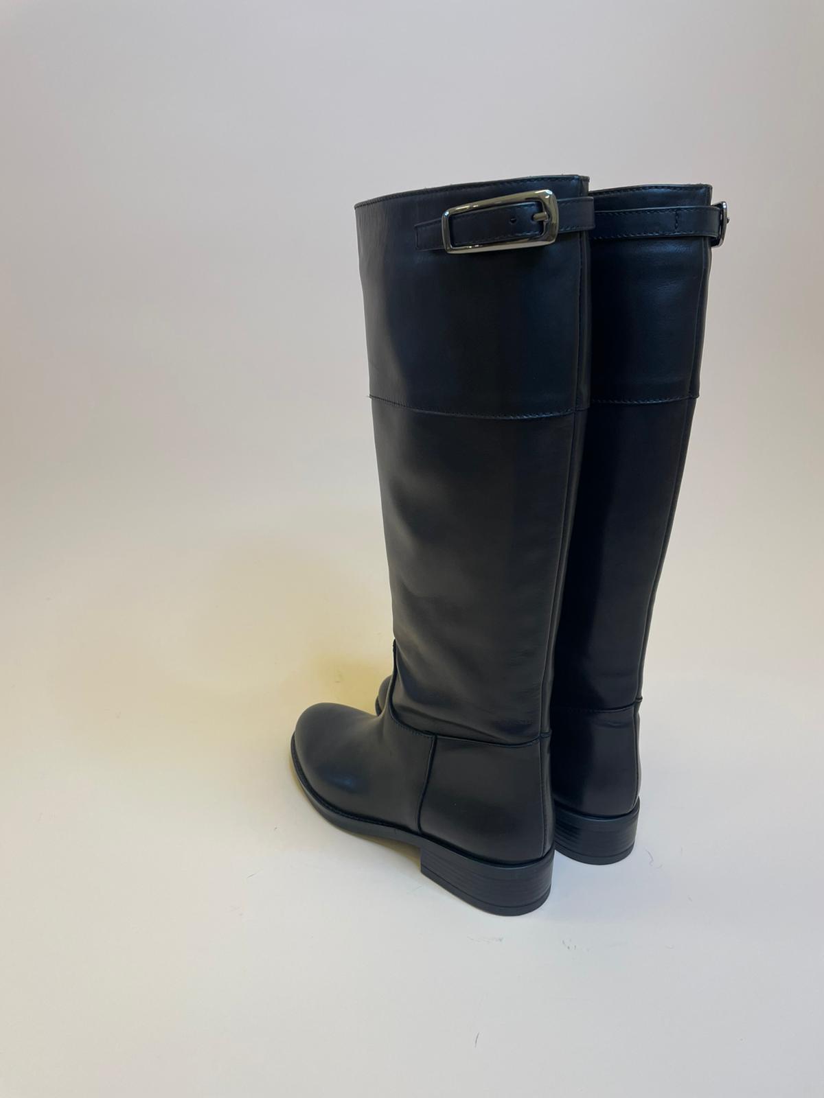 Stivale in vera pelle di vitello nero con gambale sotto al ginocchio