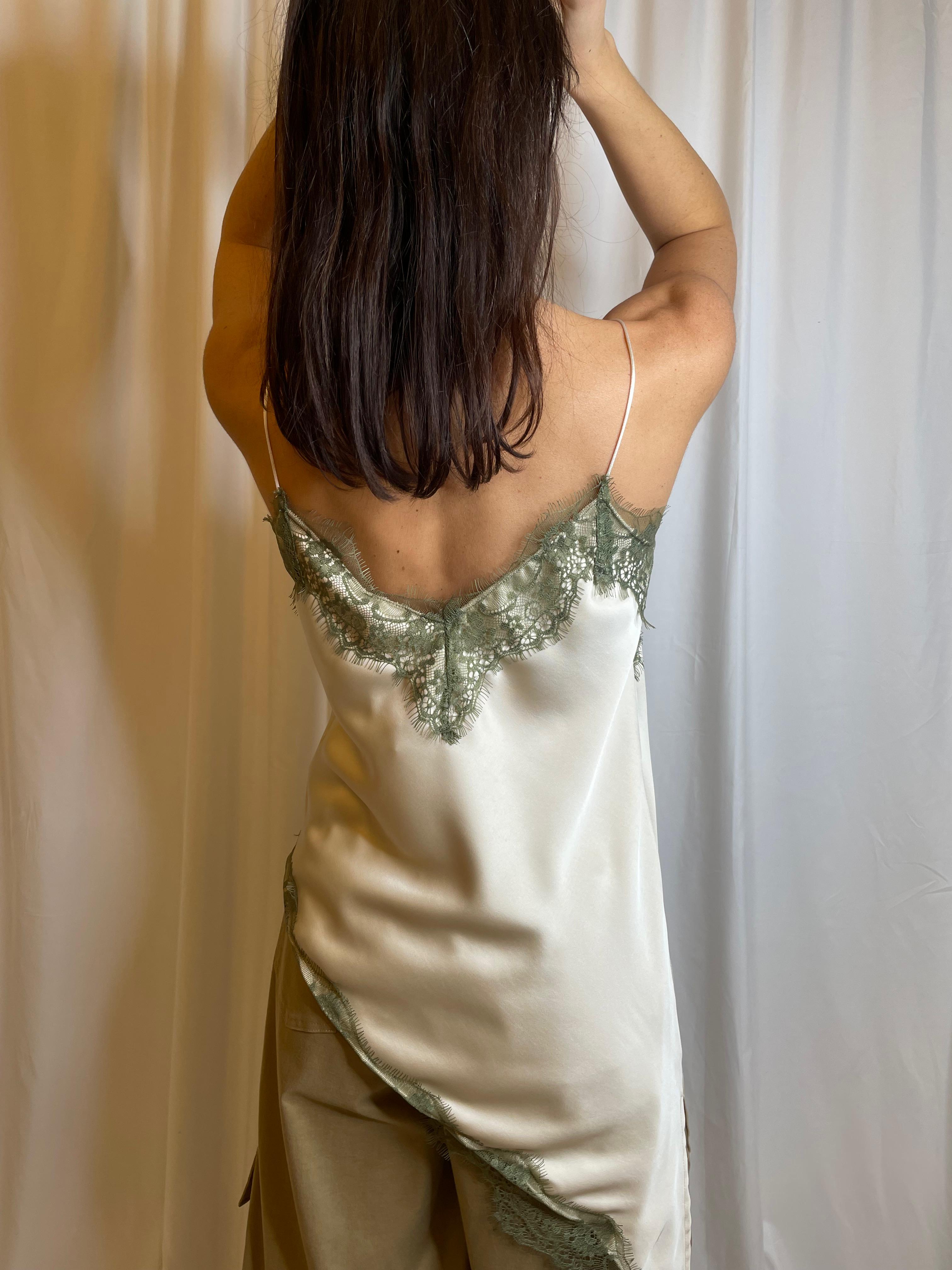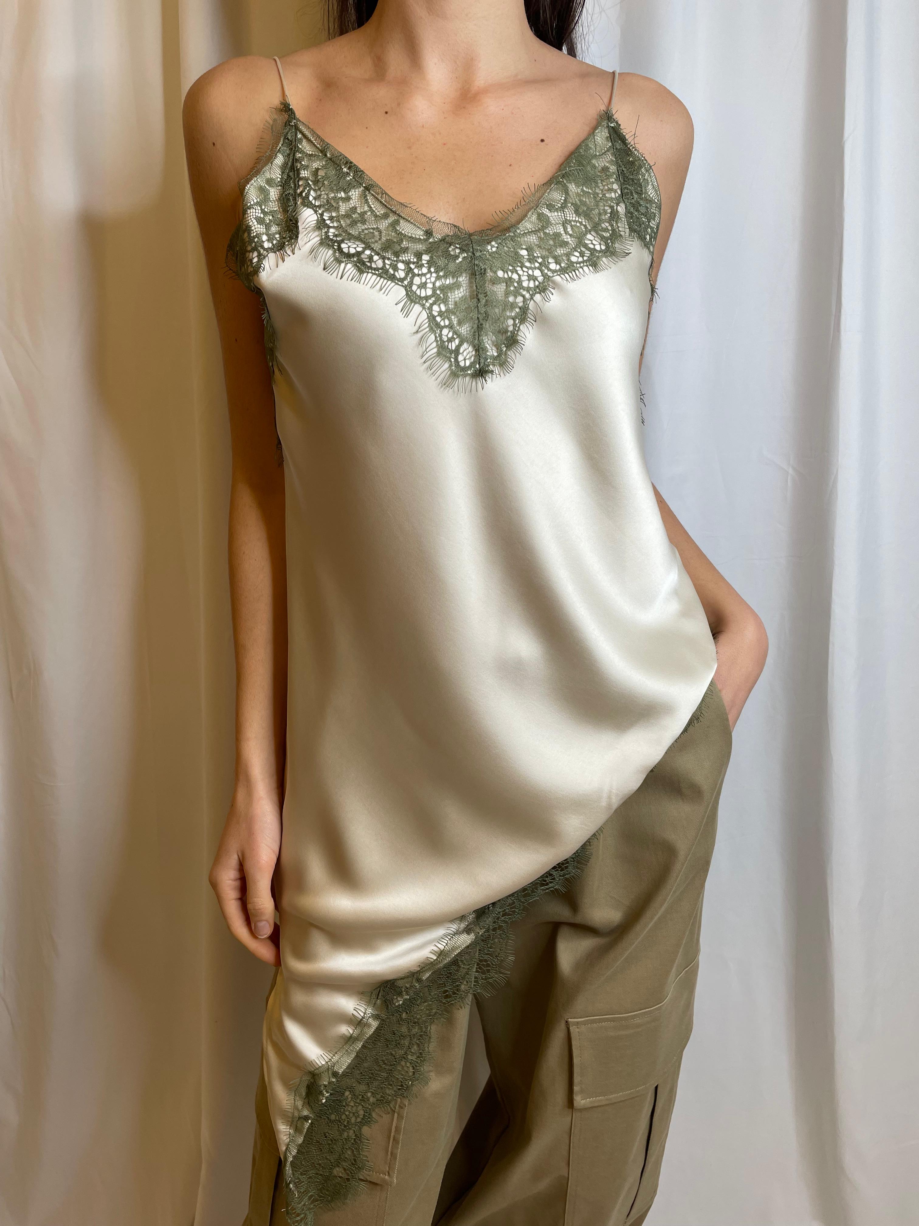 Blusa con rifiniture in pizzo, spalline regolabili e spacco laterale