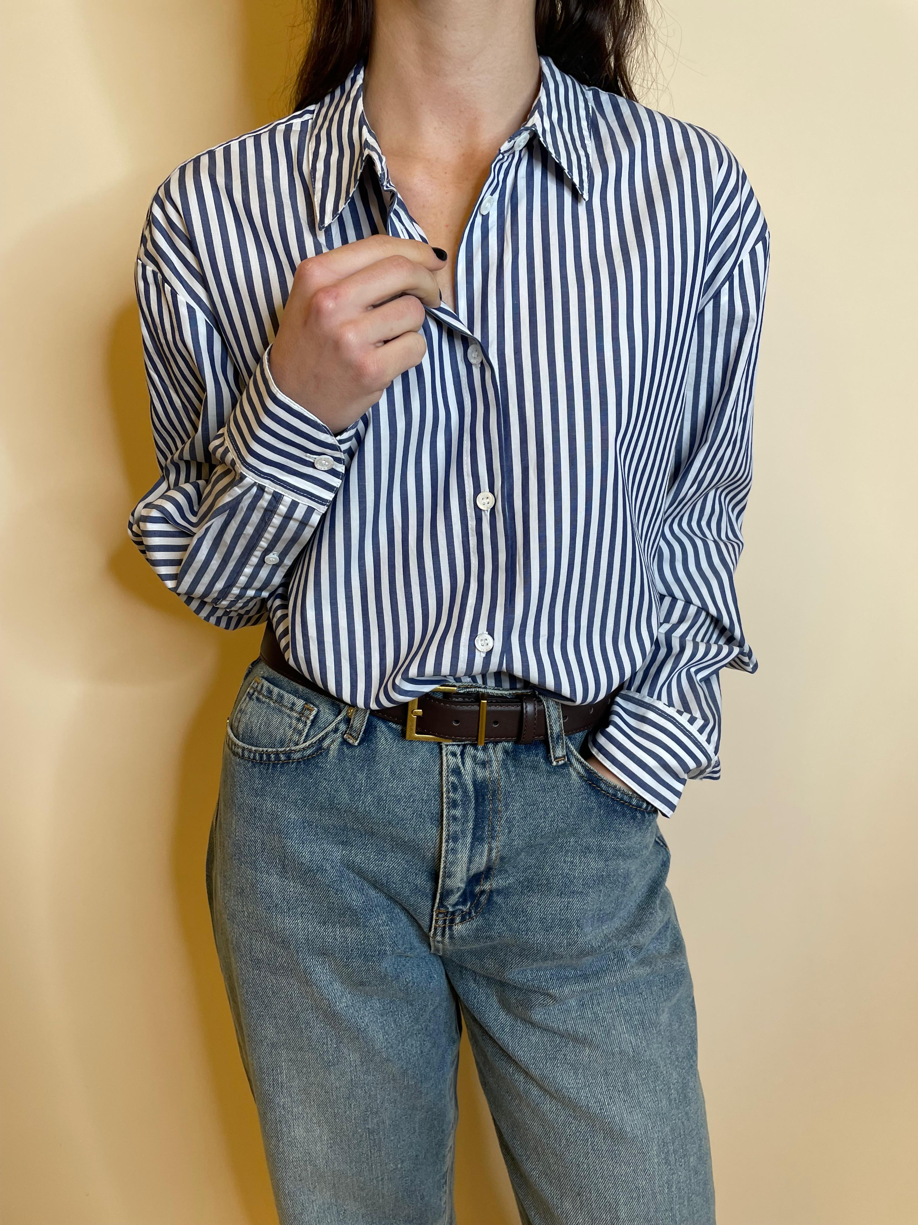 Stampa a righe blu navy all-over