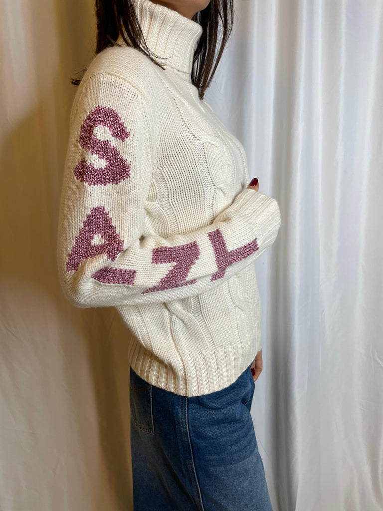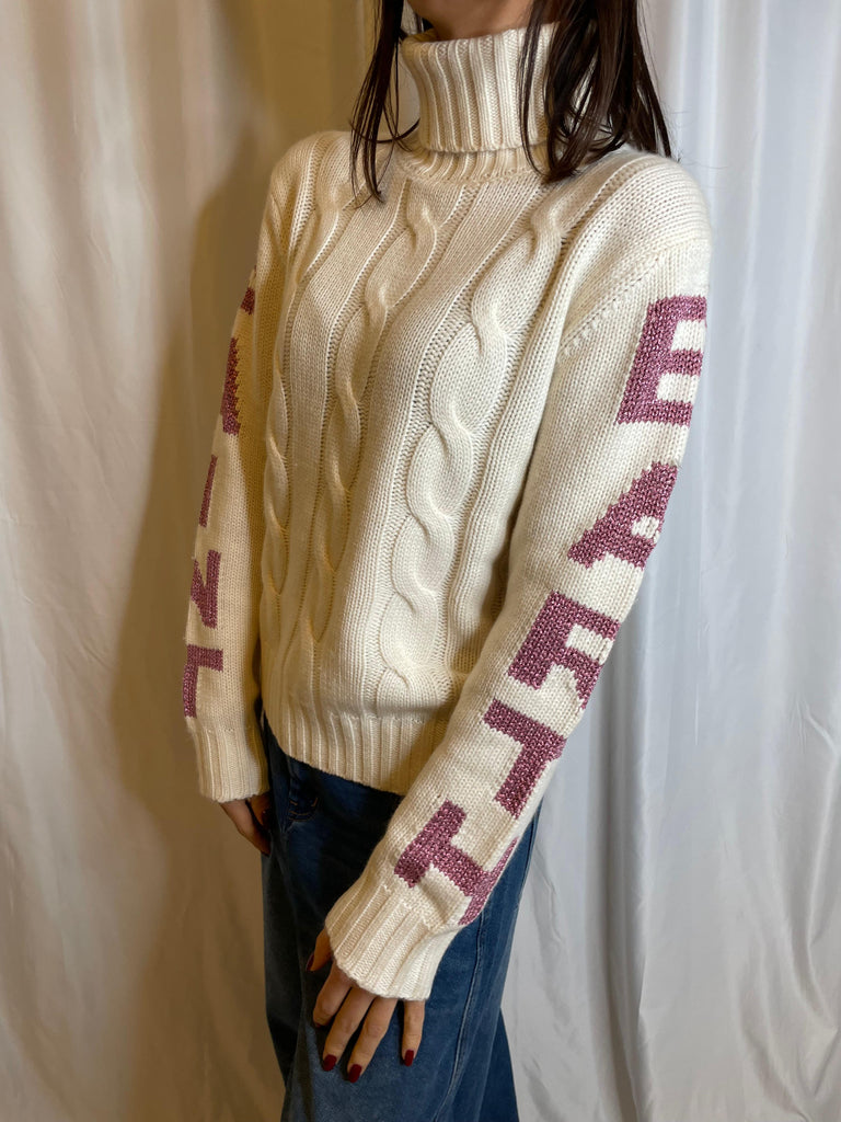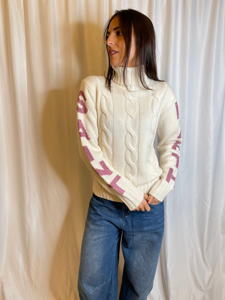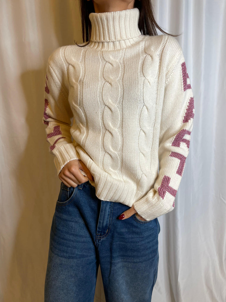 Maglione dolcevita con lavorazione a trecce