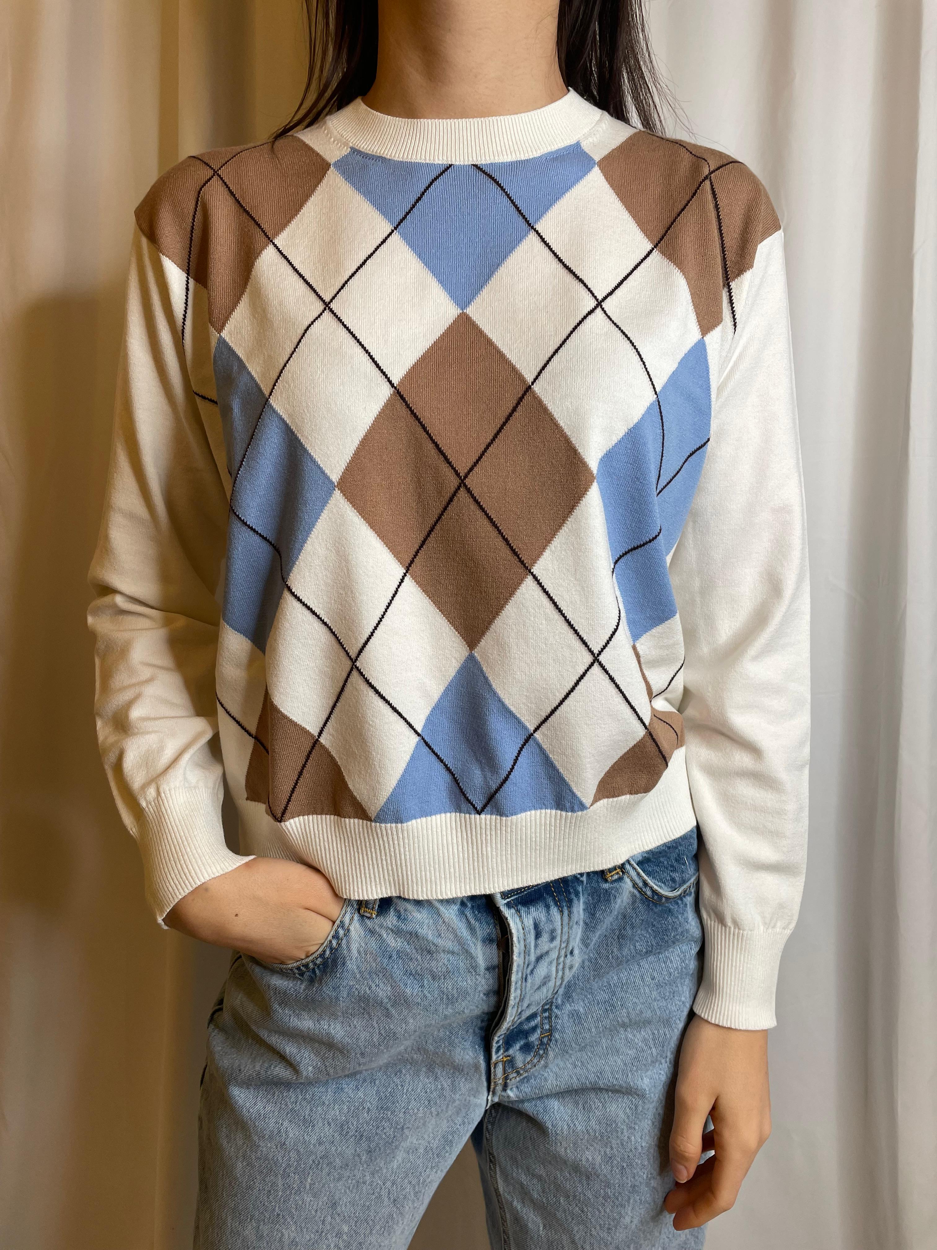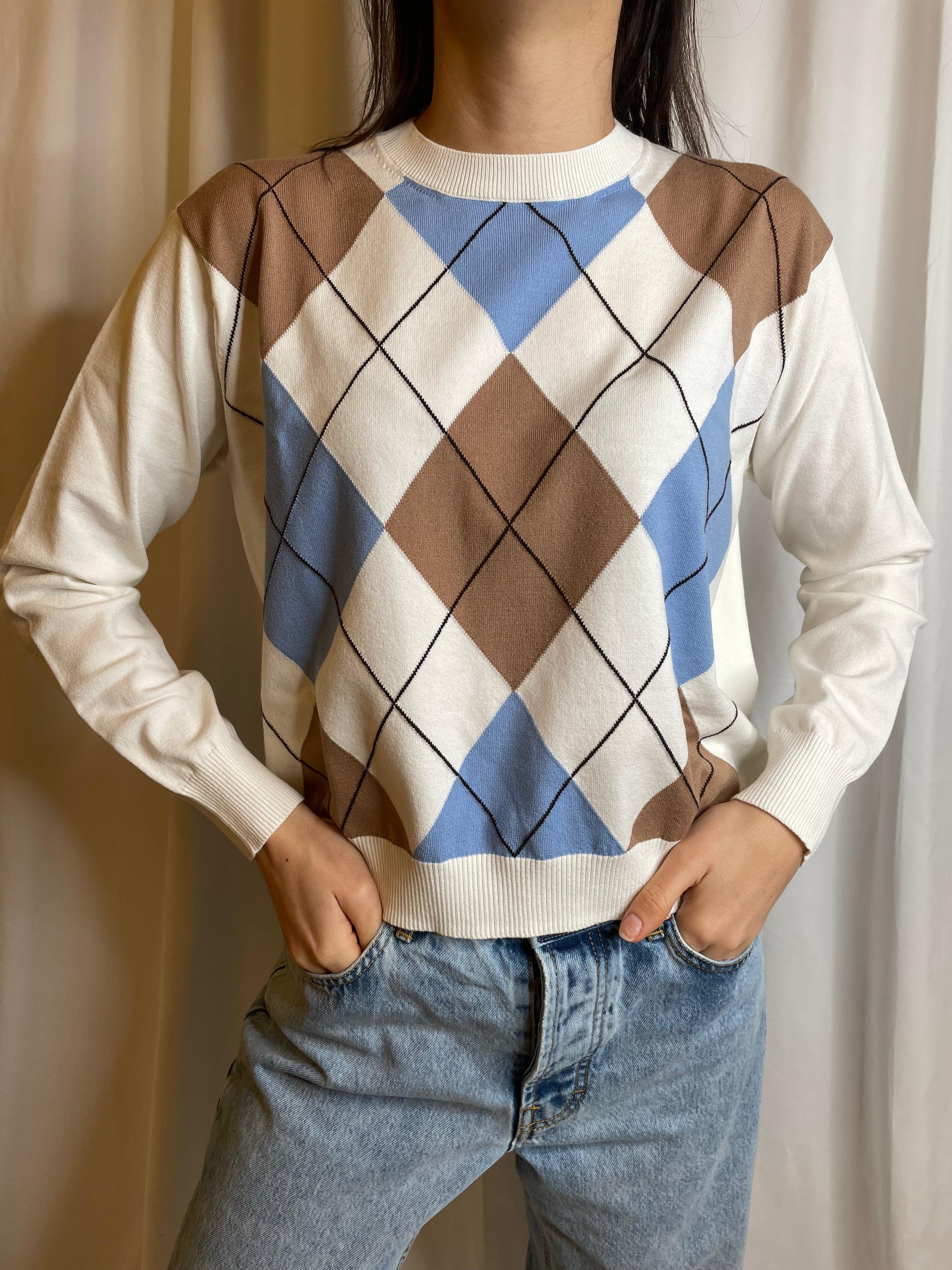 Maglia in viscosa girocollo in fantasia a rombi