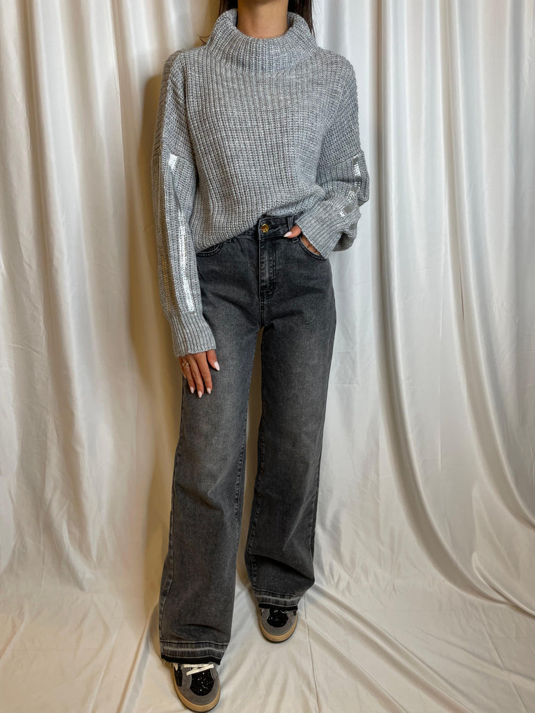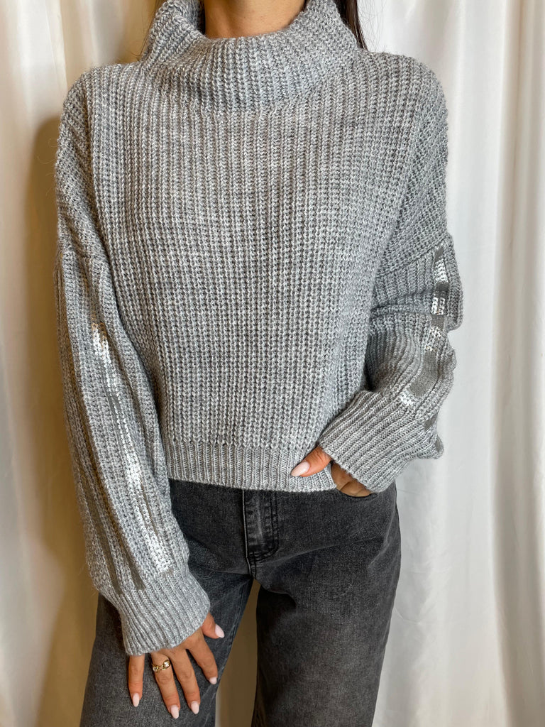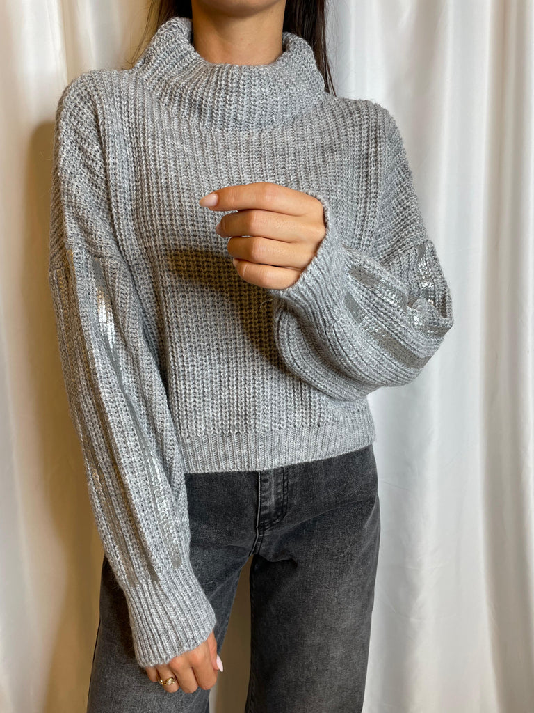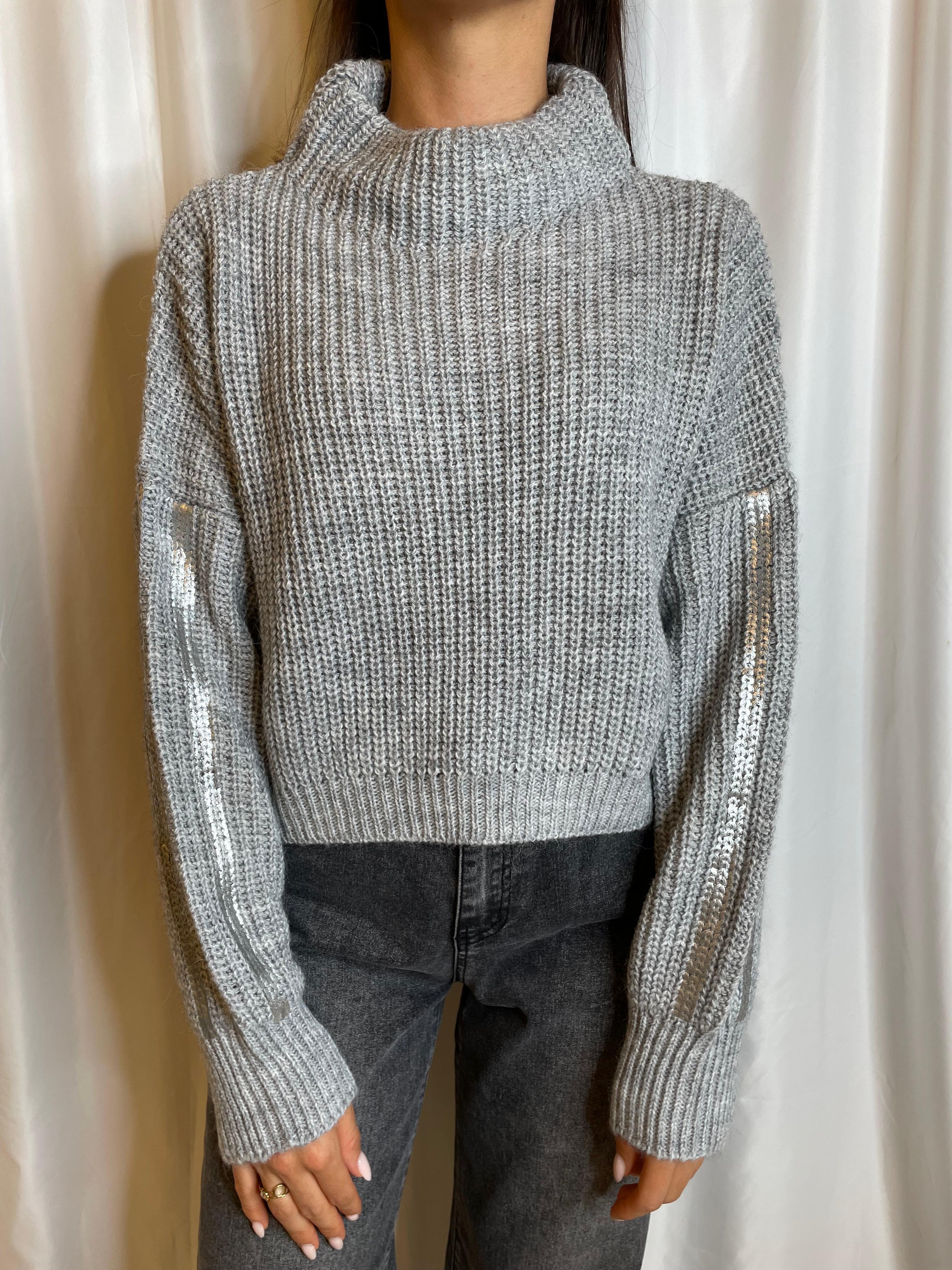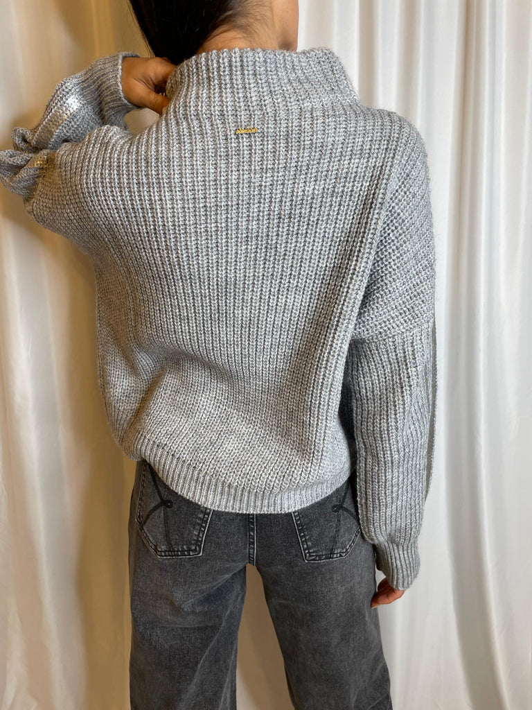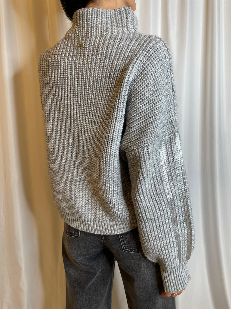 Maglia in costa perlata con collo a ciambella e manica laminata