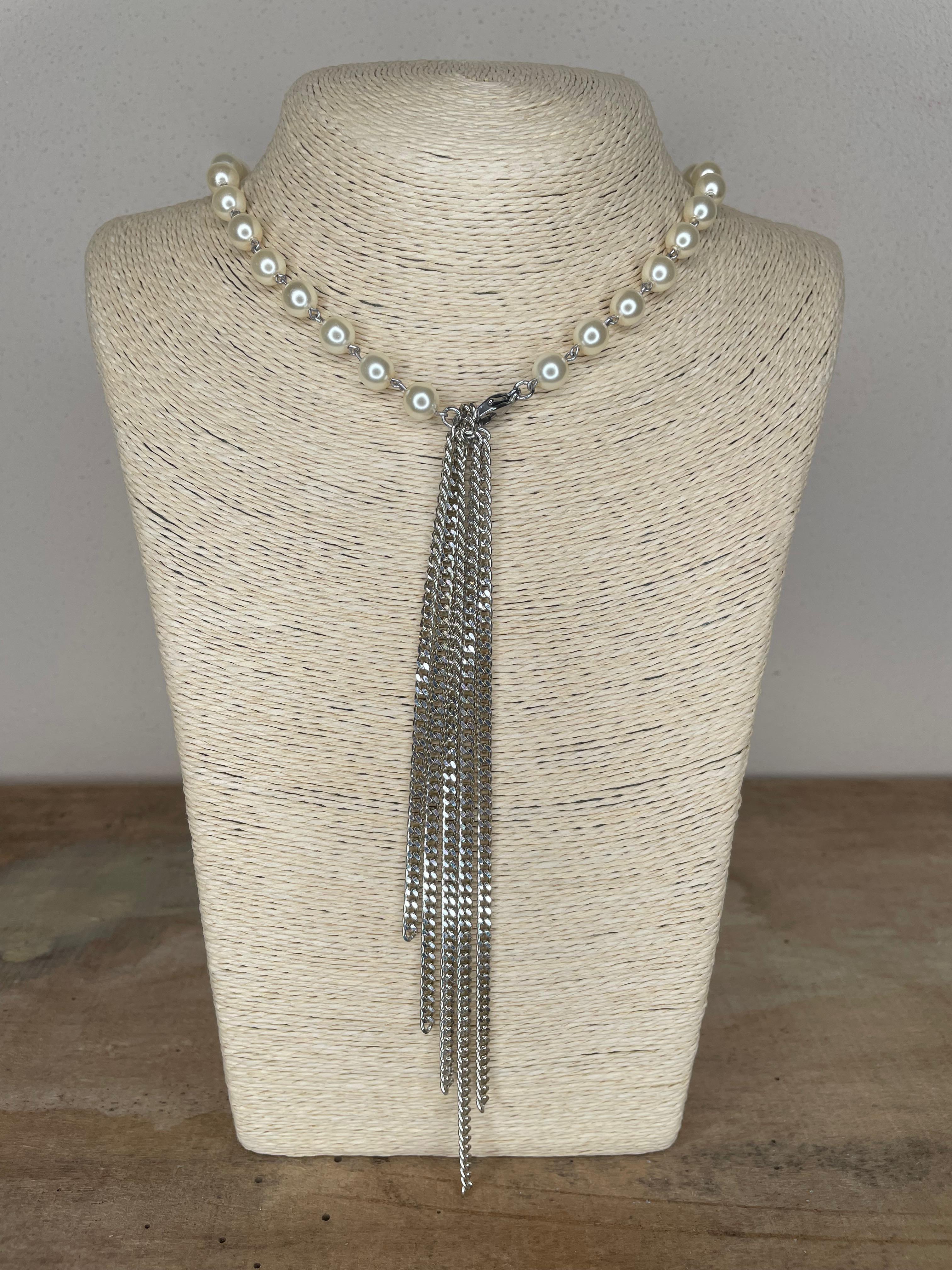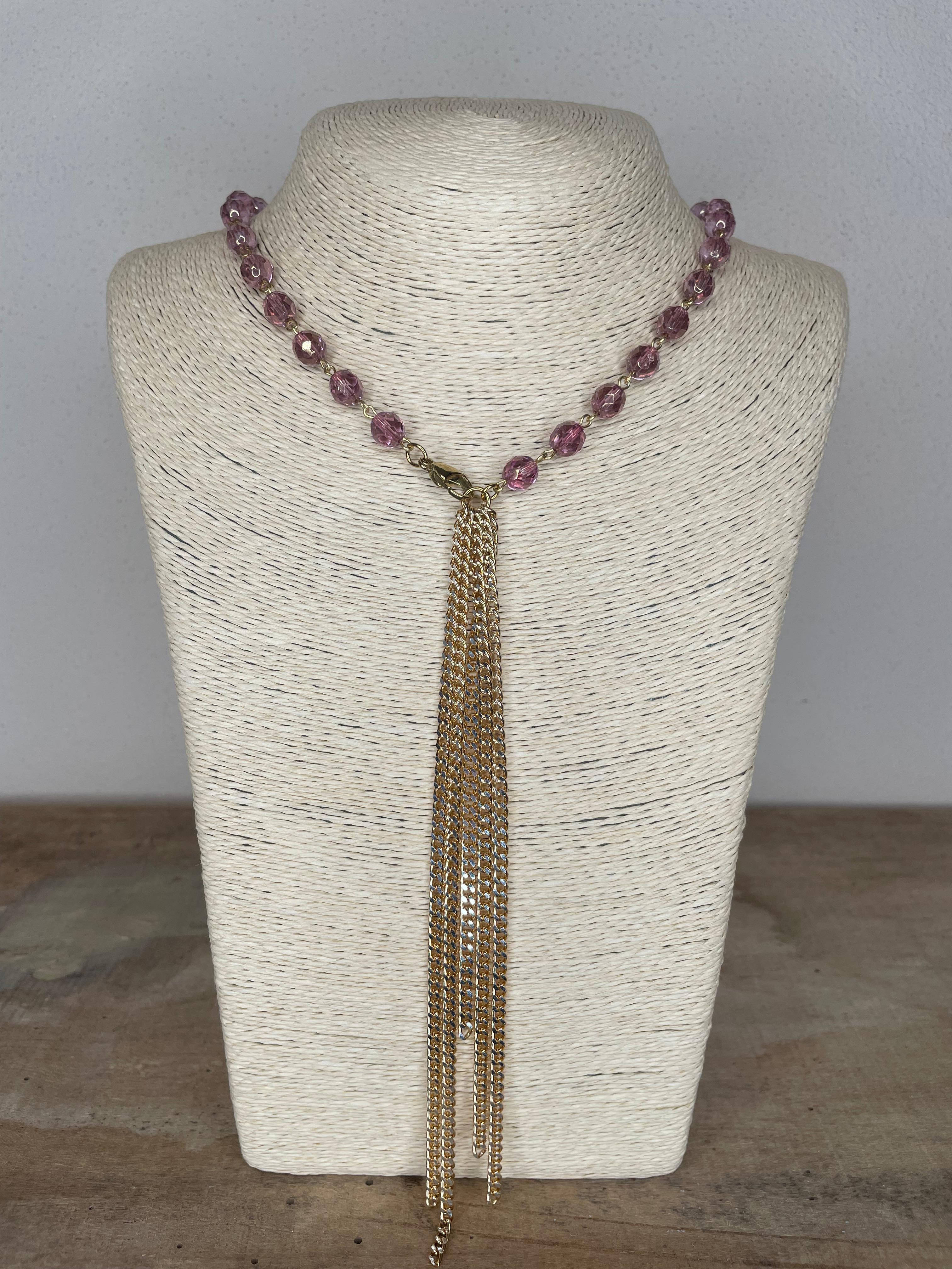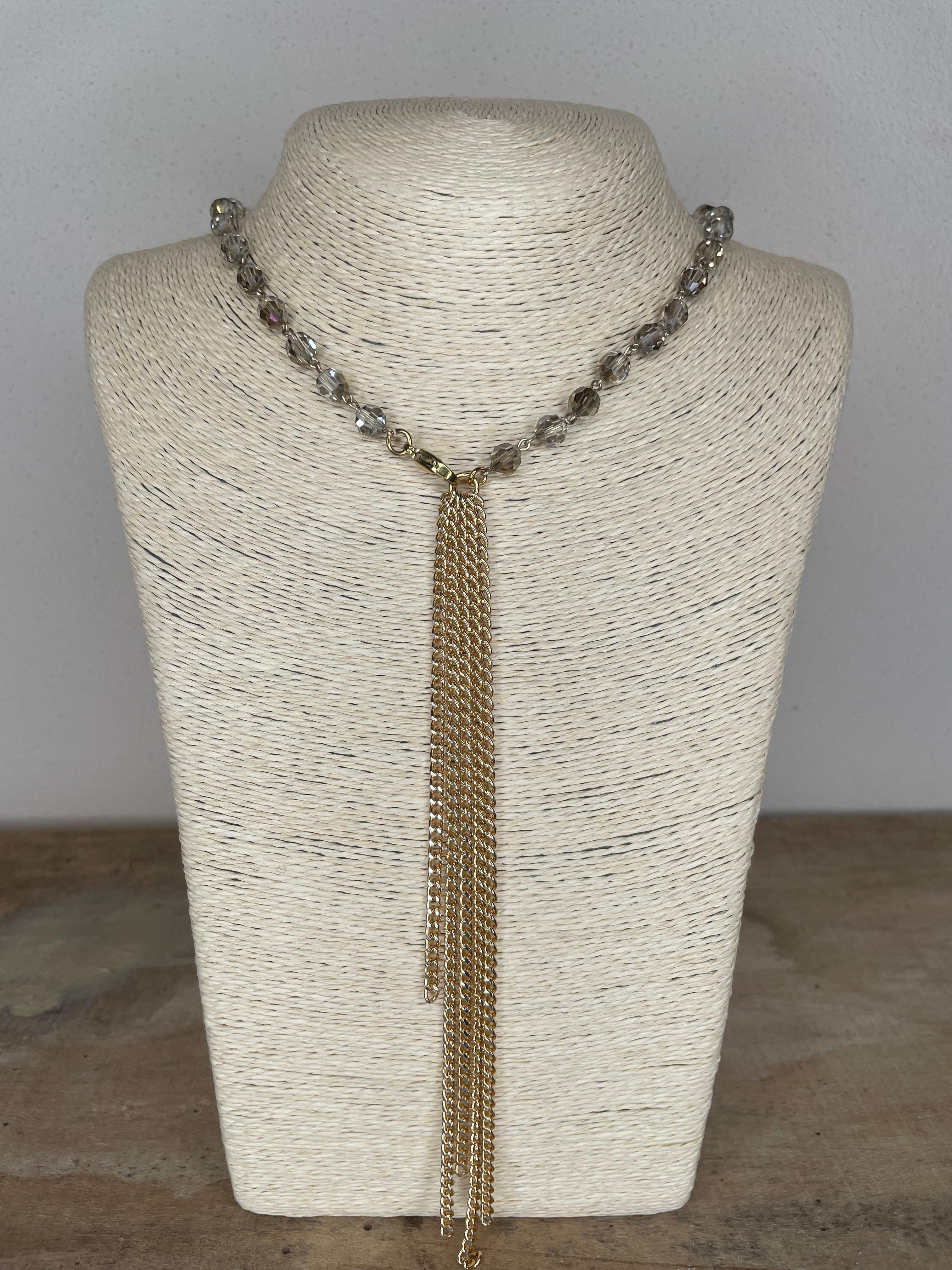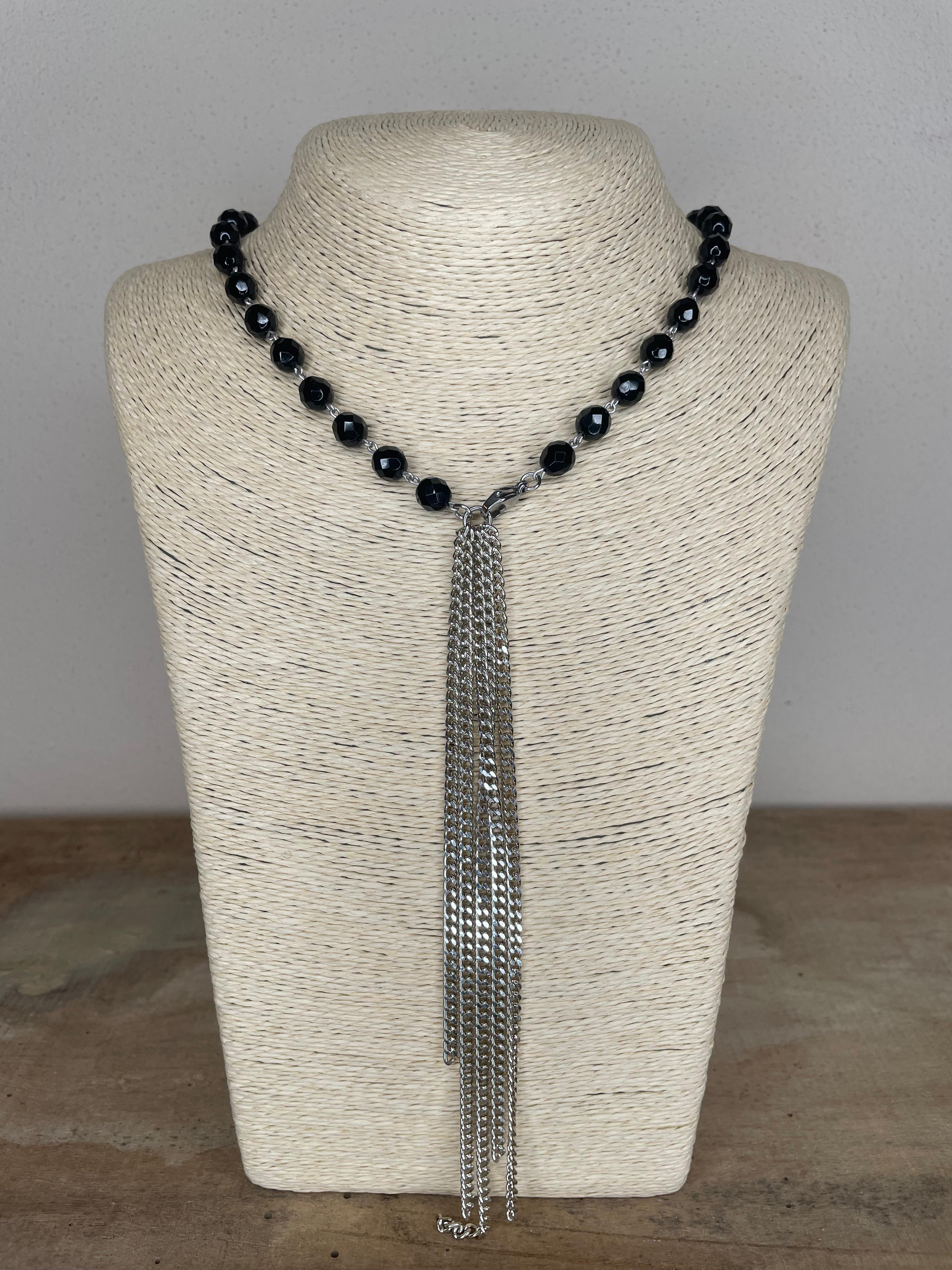 Collana in acciaio con cristallo molato e cinque catene pendenti