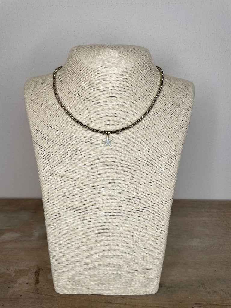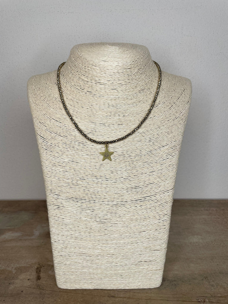 Collana girocollo super luminosa in ematite dorata e silver