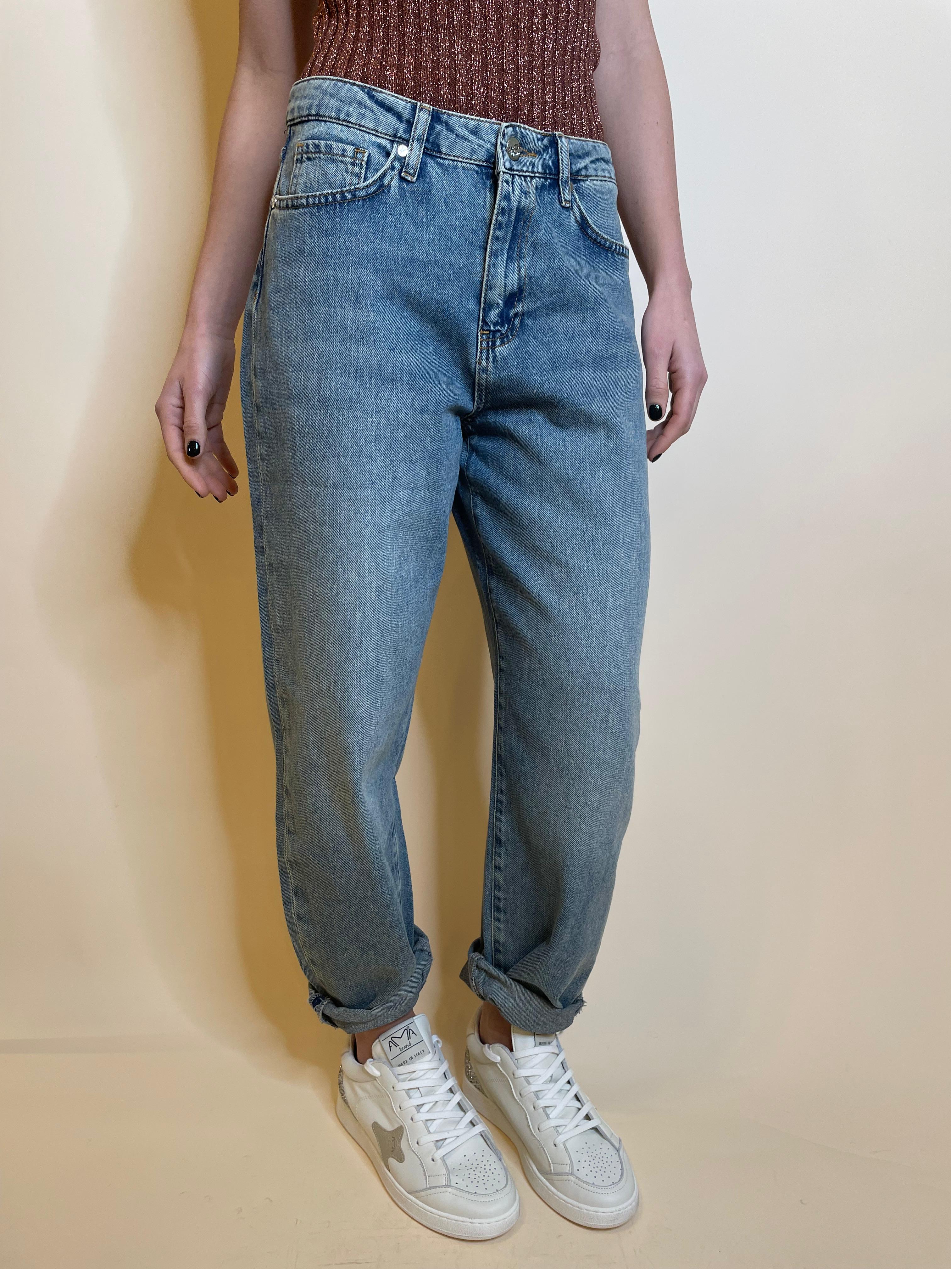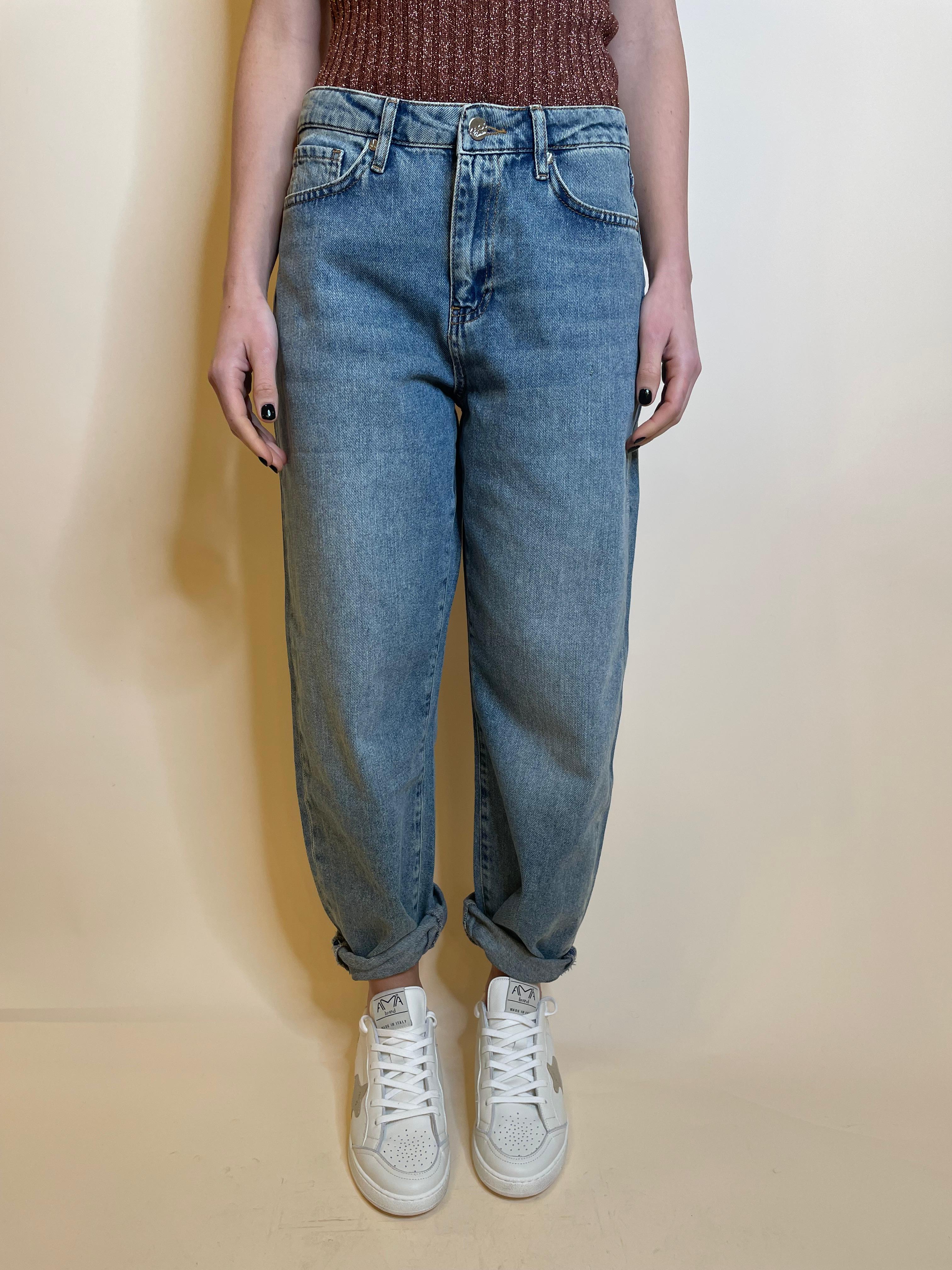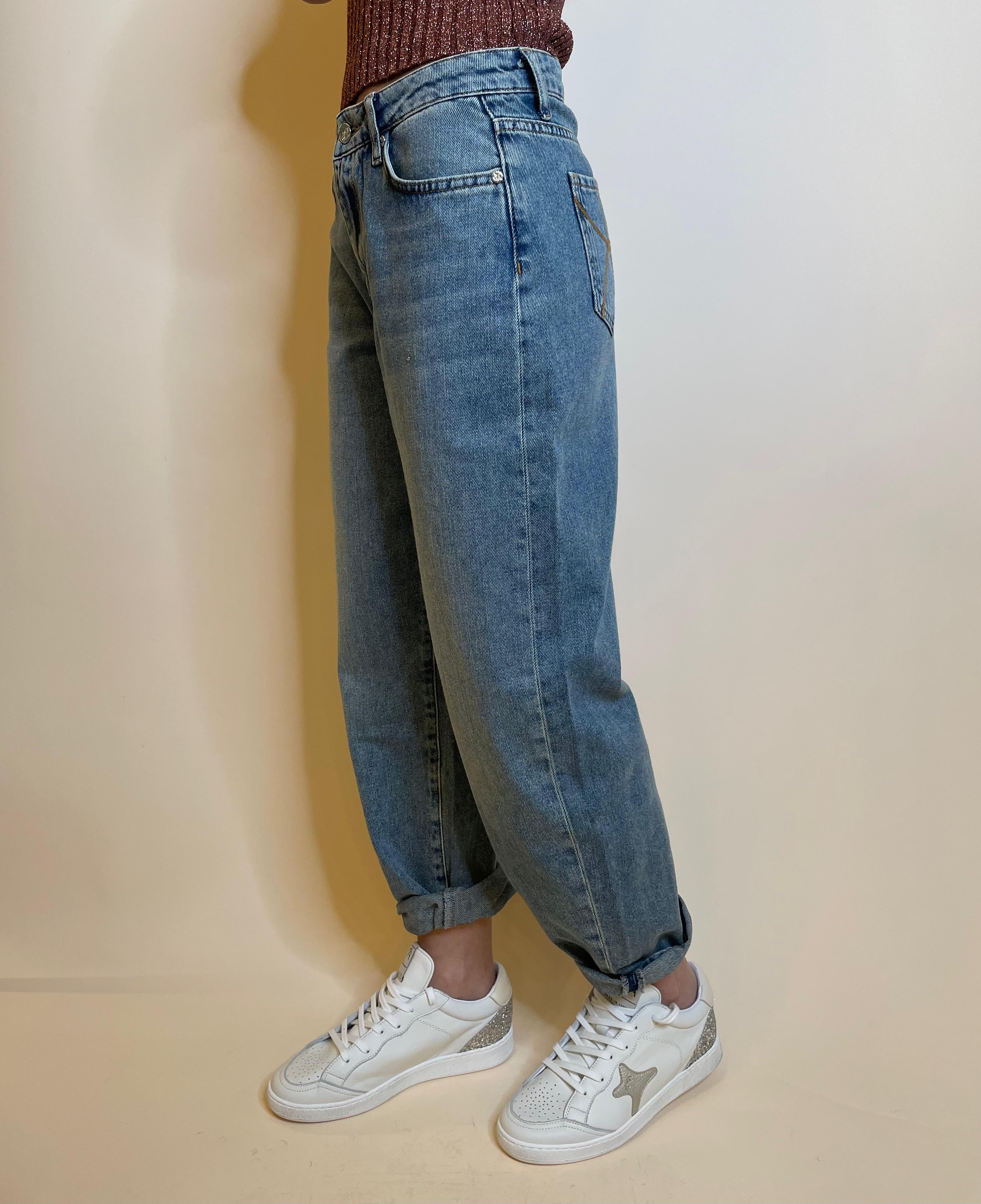 Denim modello baloon , gamba morbida, vita regolare