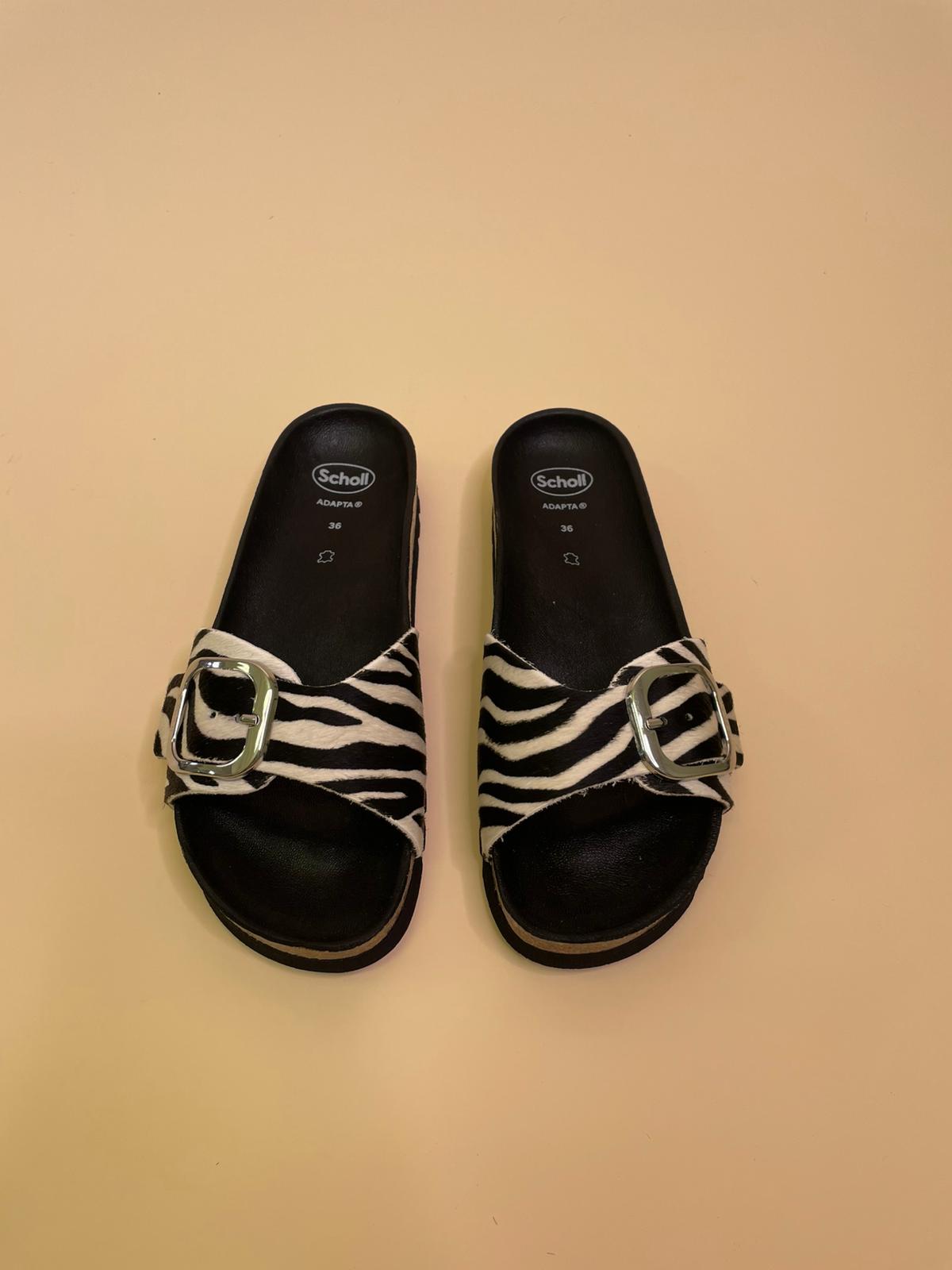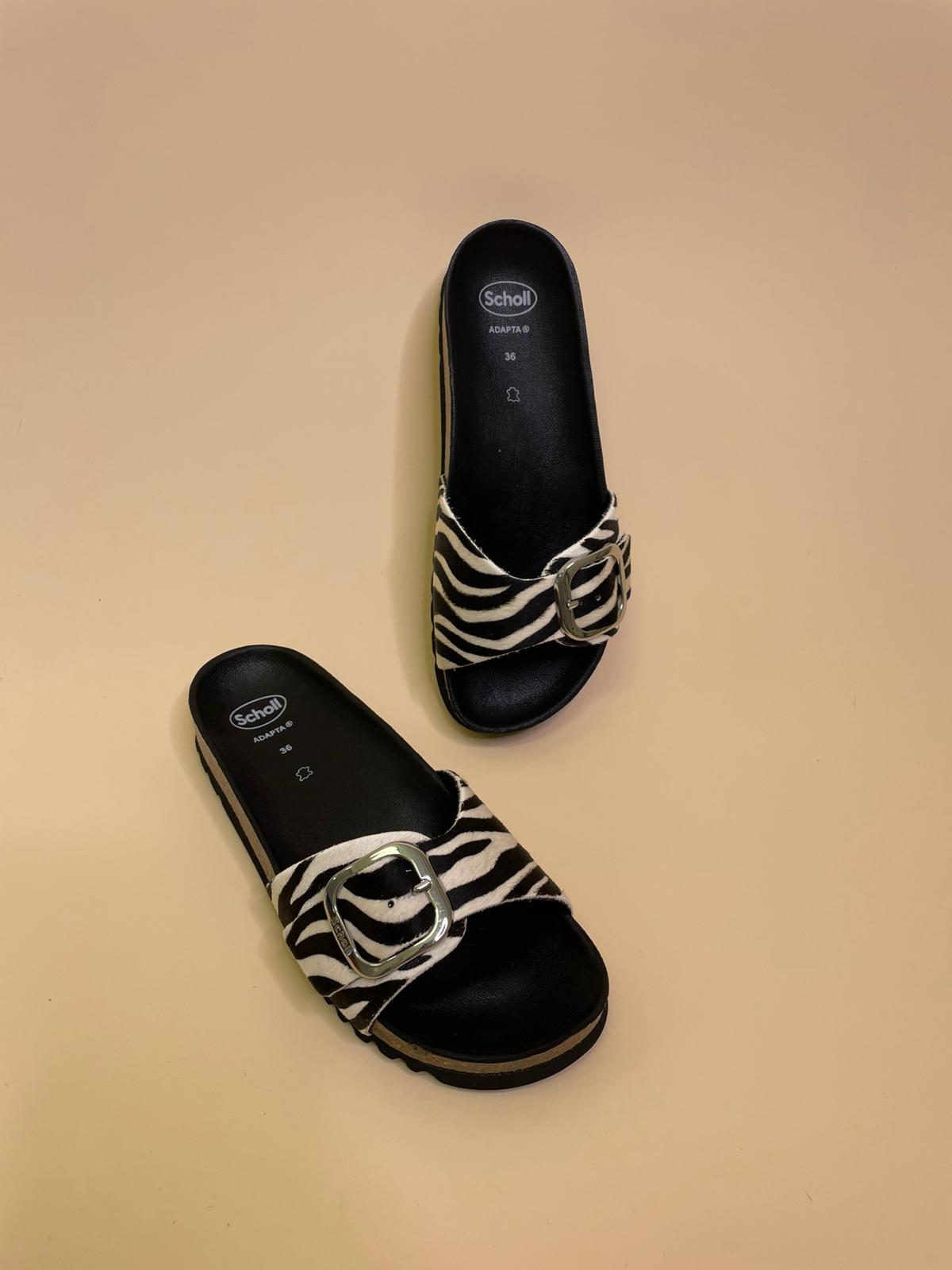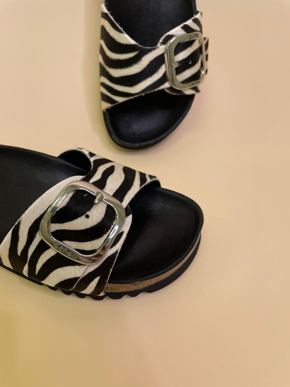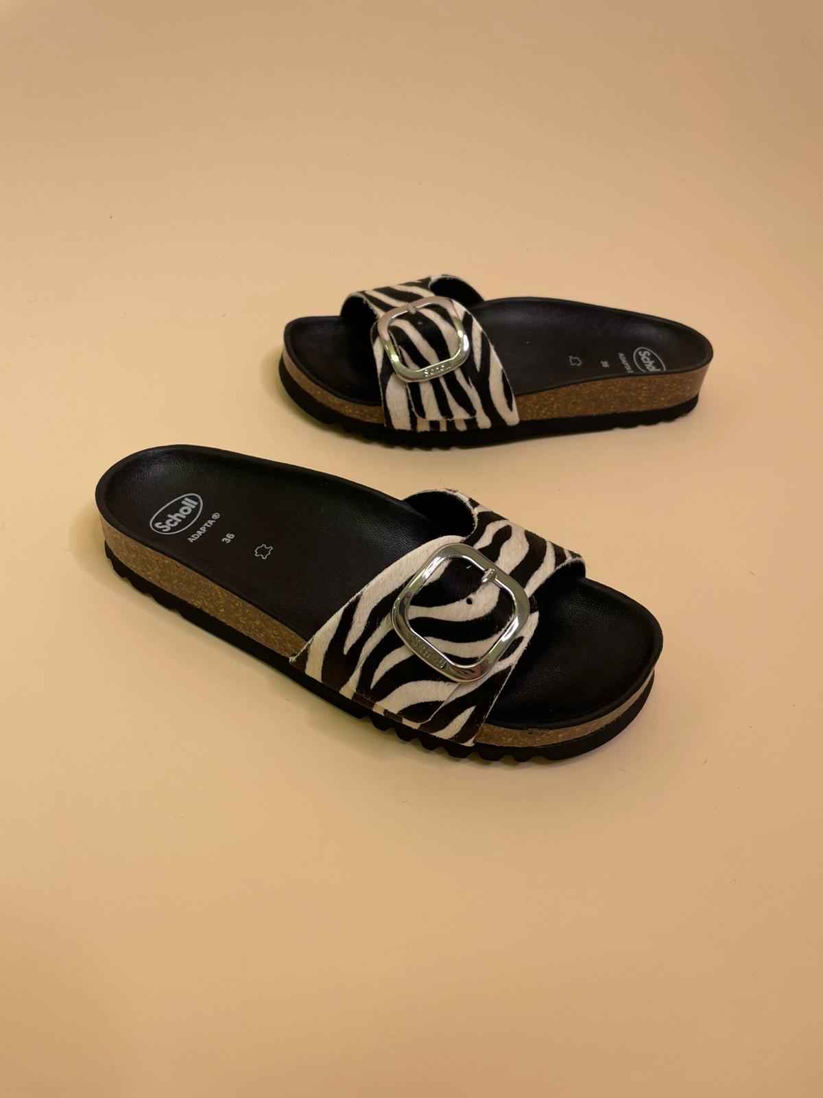 Sandalo in vera pelle con fascia regolabile in cavallino zebrato e fibia