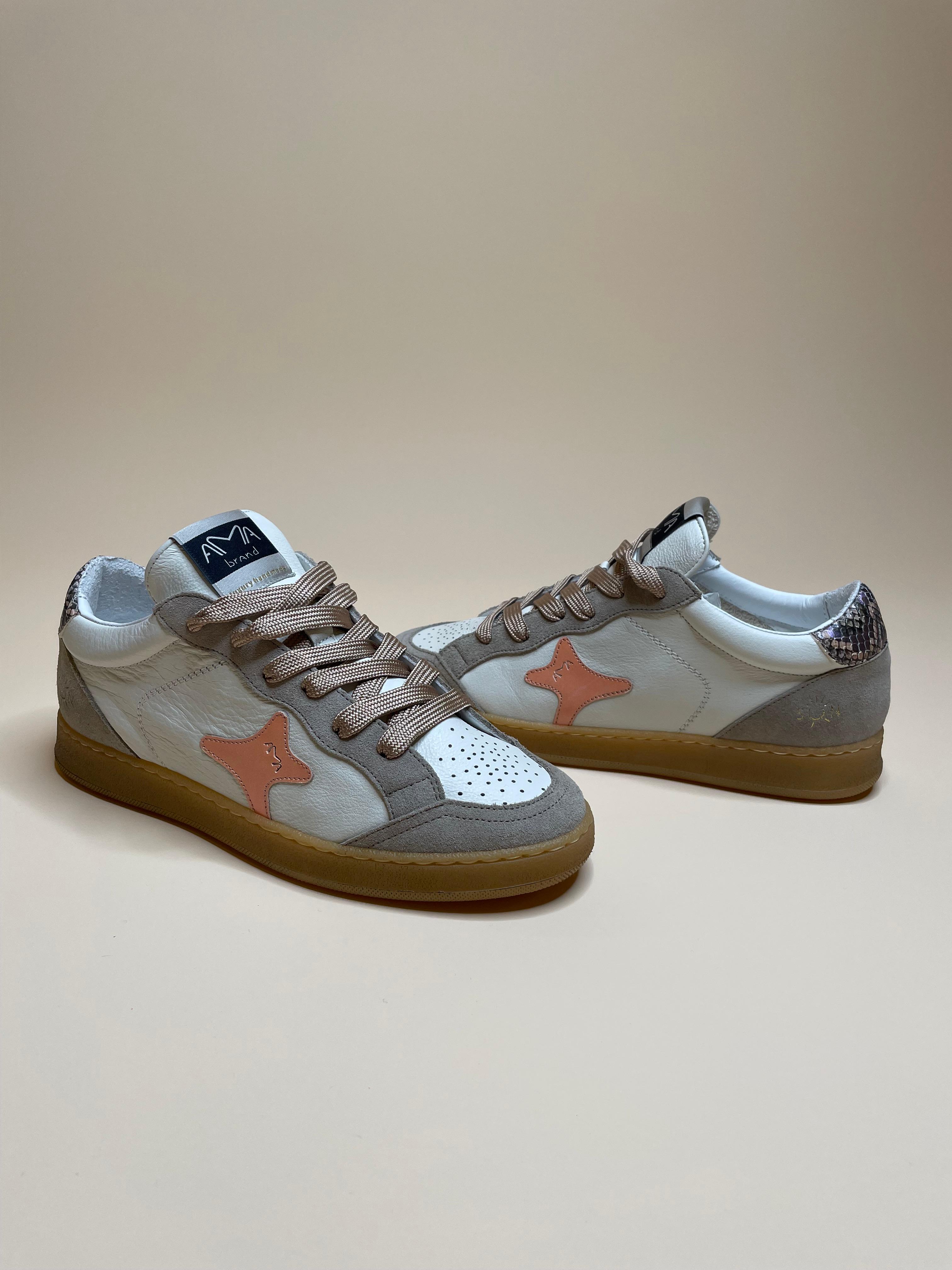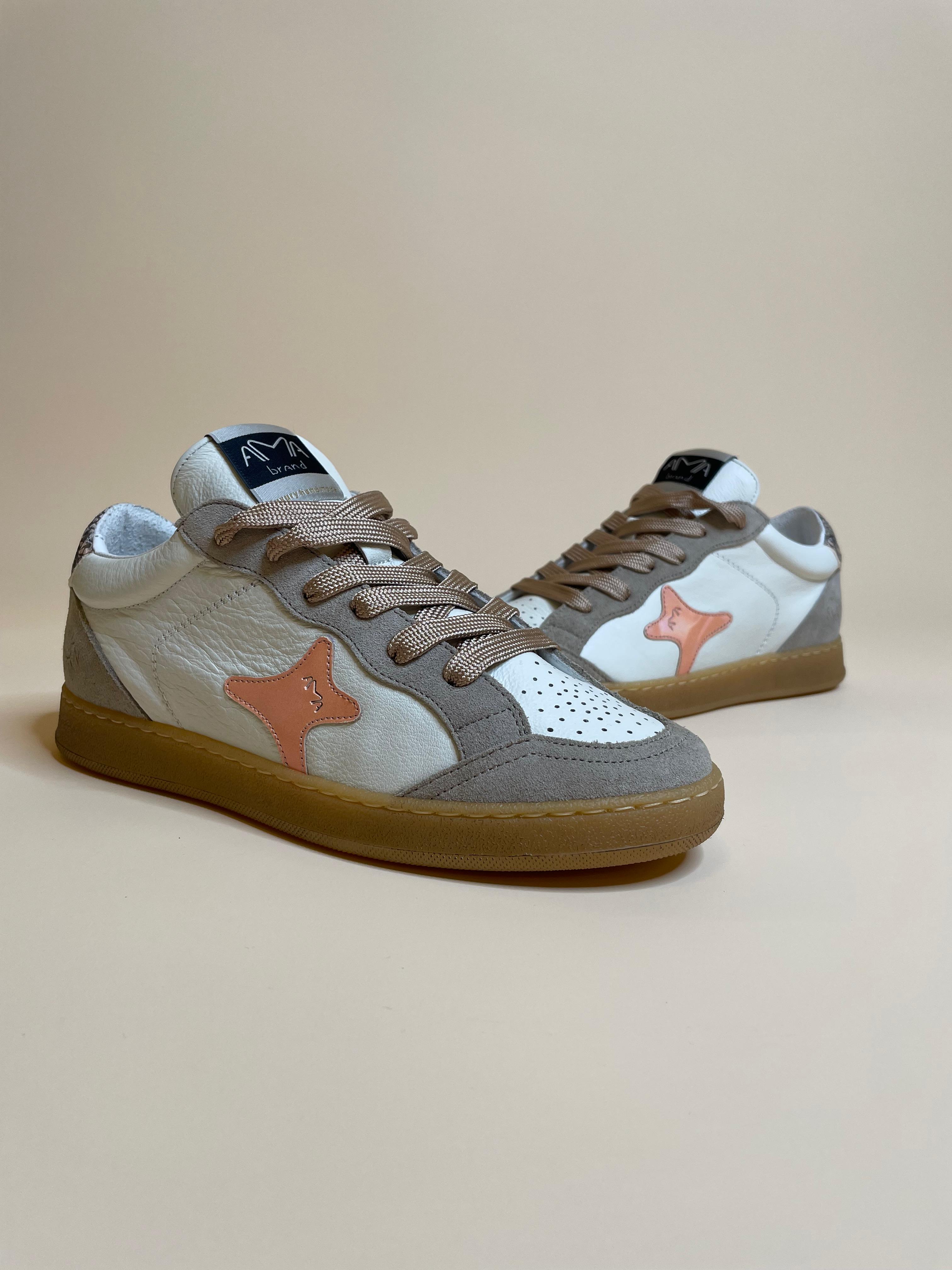 Sneakers in vera pelle ultra morbida made in Italy con rifiniture scamosciate color tortora