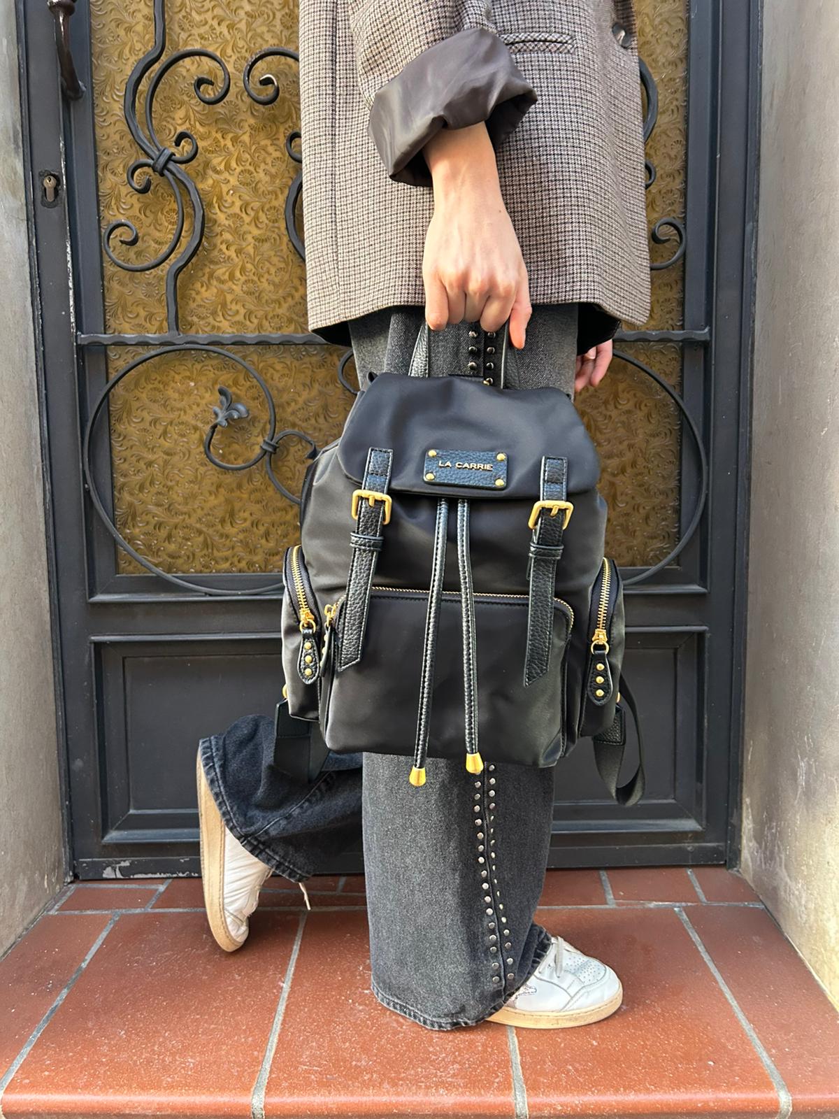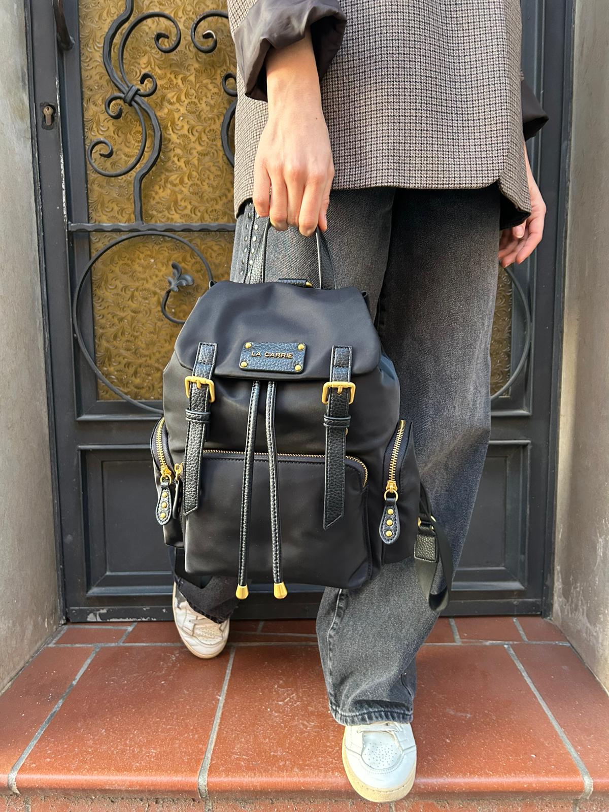 Zaino in nylon imbottito con logo nella patta,