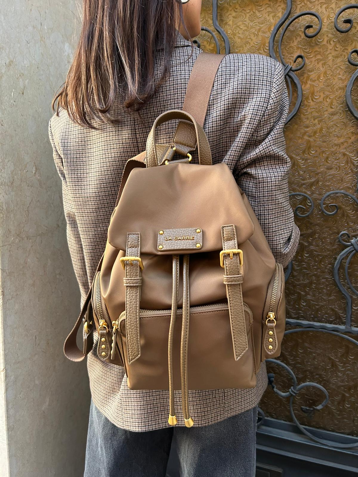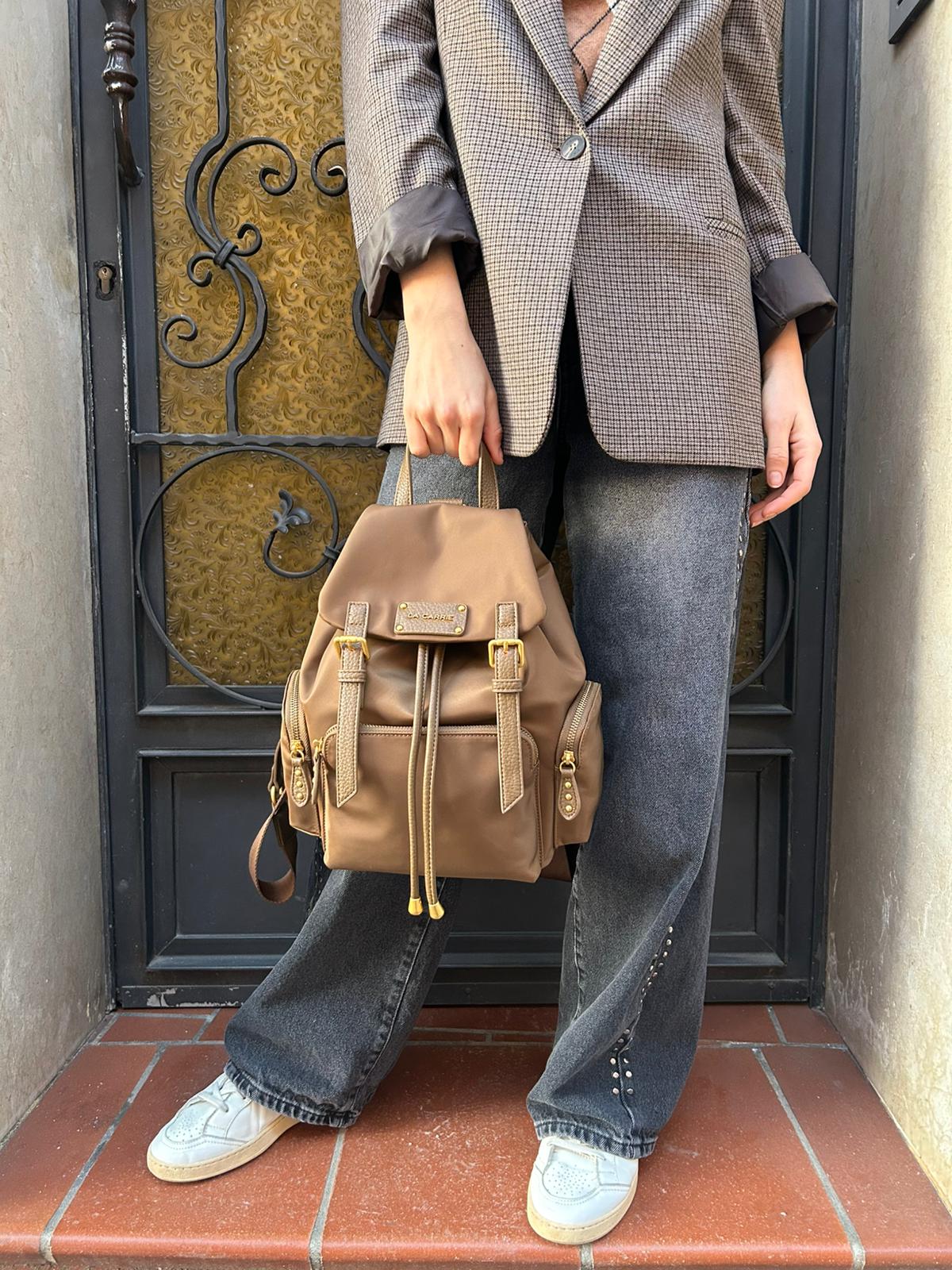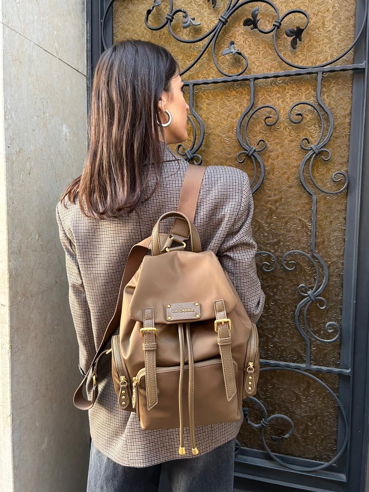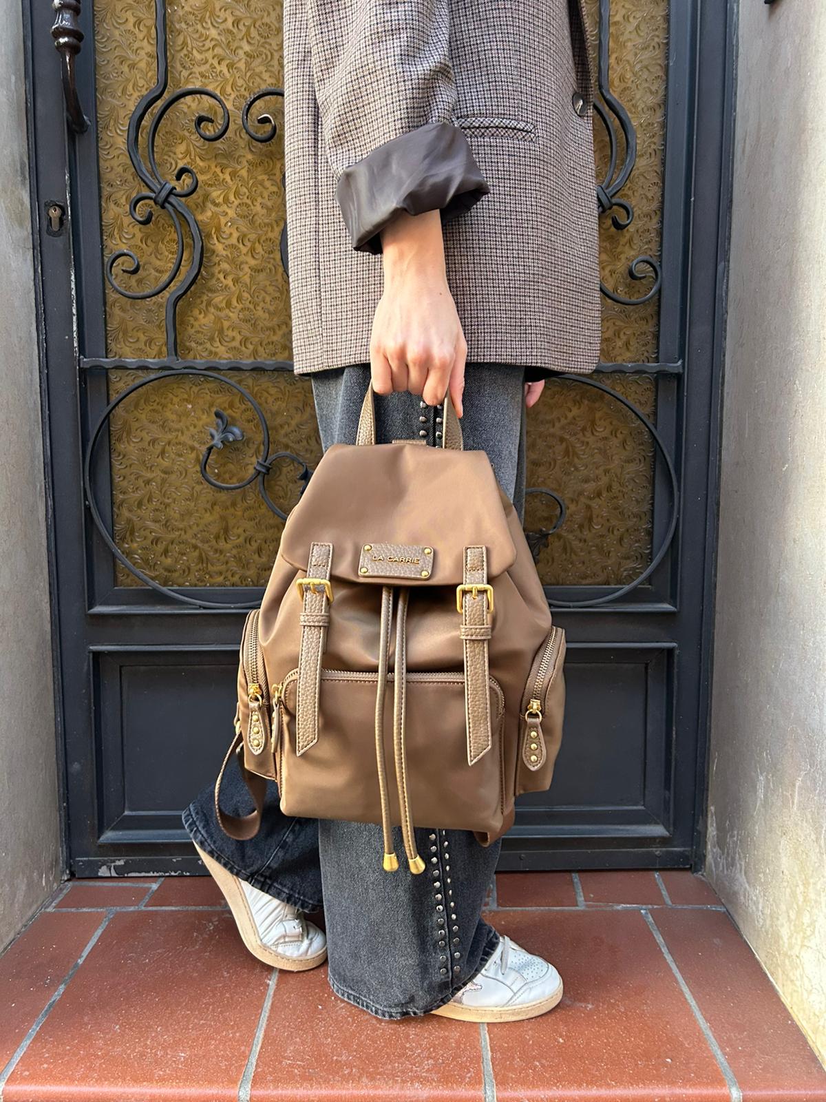 Zaino in nylon imbottito con logo nella patta,
